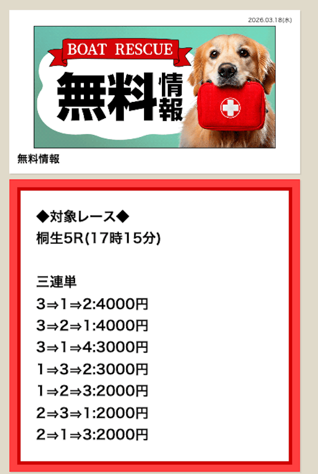 ’26/03/26 的中無料予想で87,600円獲得