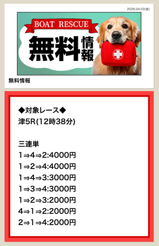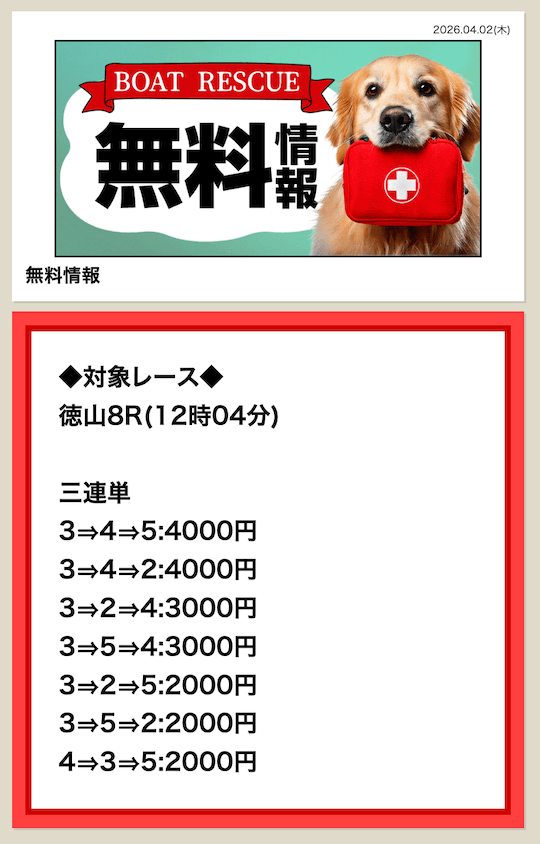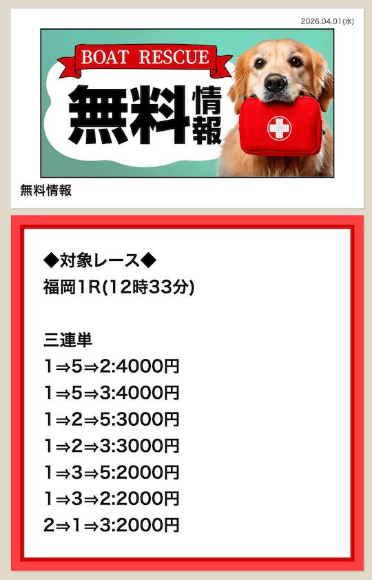 ’26/04/02 的中無料予想で73,200円獲得