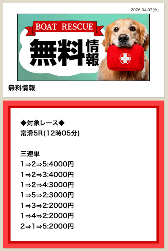 ’26/04/07 的中無料予想で28,000円獲得