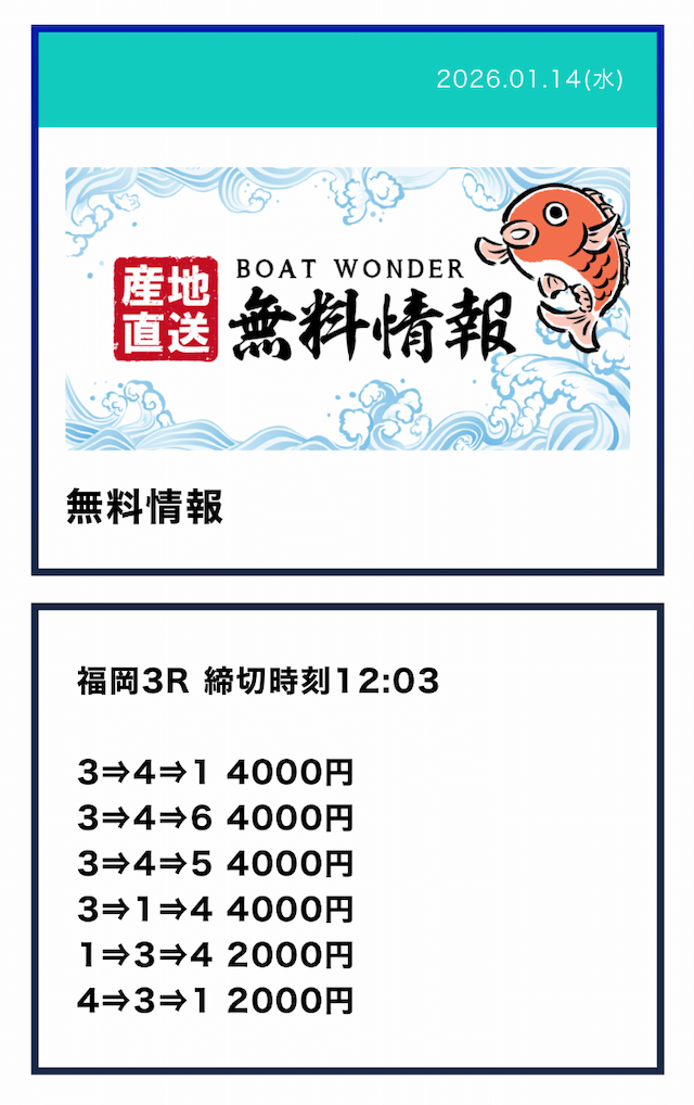 ’26/01/04 的中無料予想で40,000円獲得