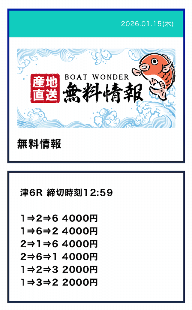 ’26/01/15 的中無料予想で181,200円獲得