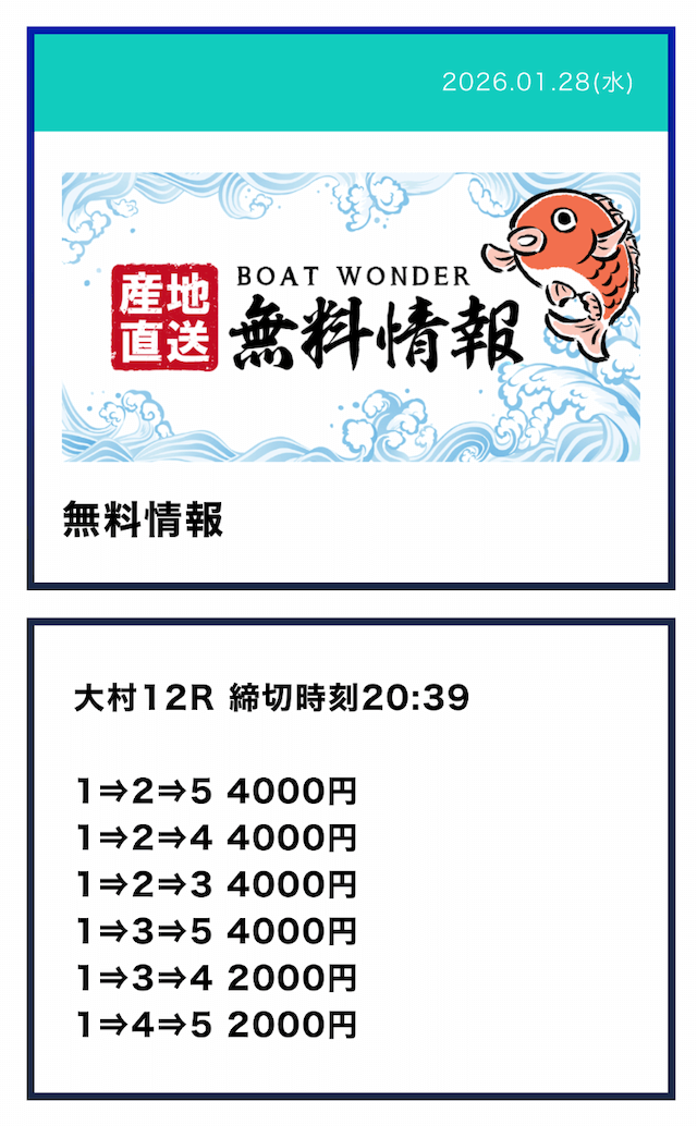 ’26/01/28 的中無料予想で39,200円獲得