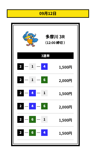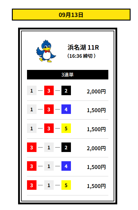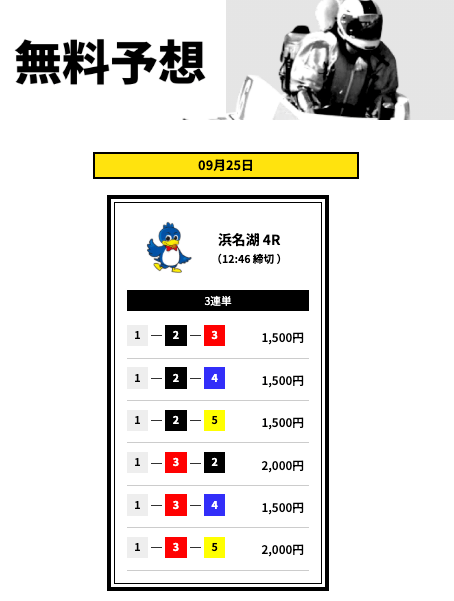 ’25/09/01 的中無料予想で13,500円獲得