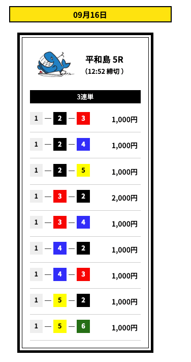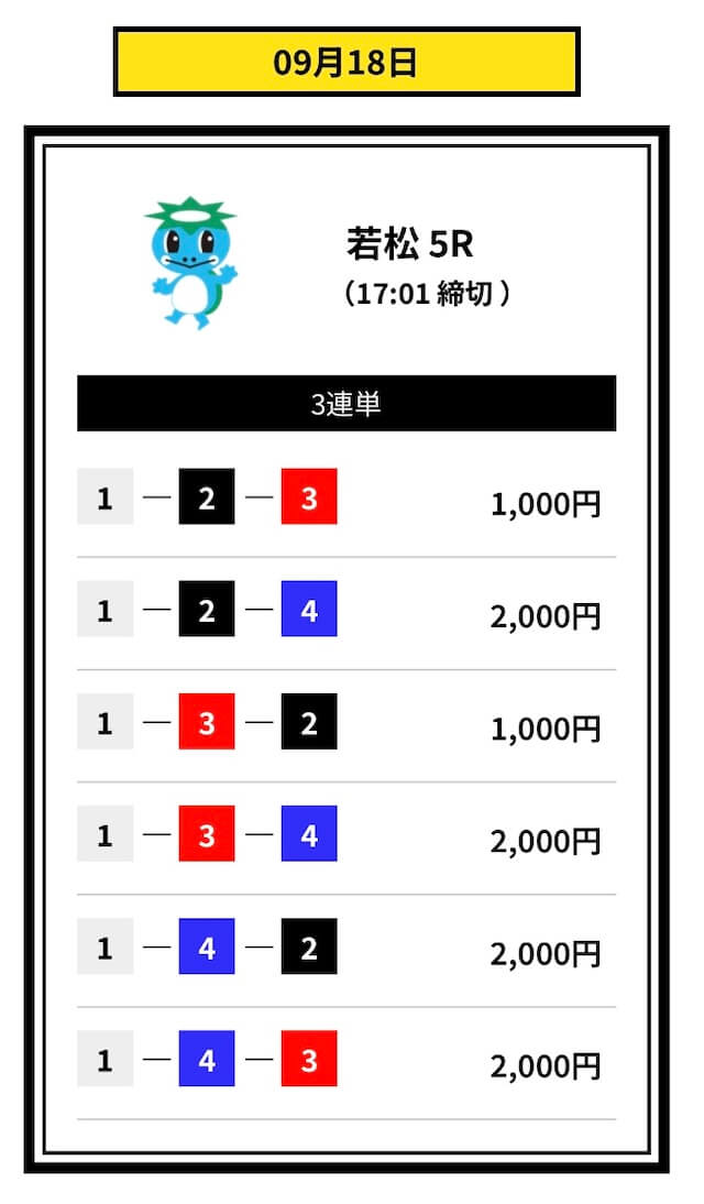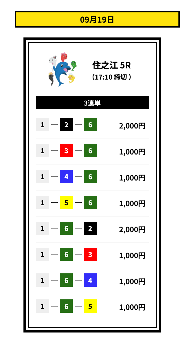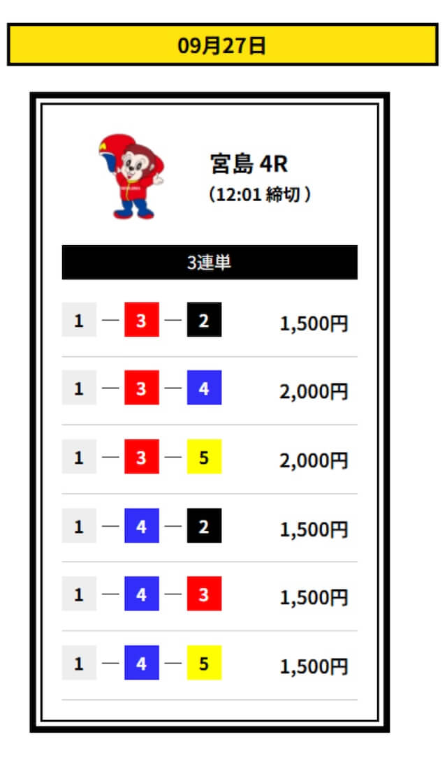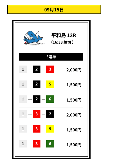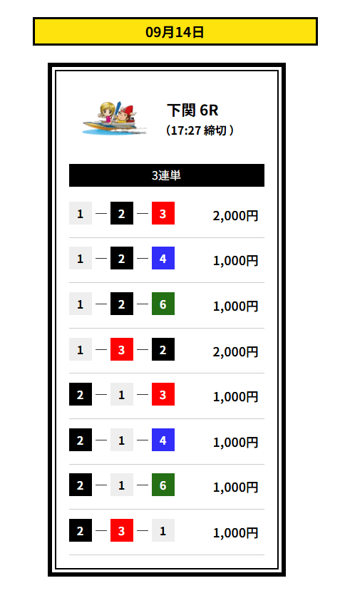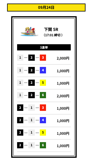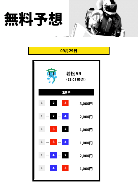 ’25/09/11 的中無料予想で17,000円獲得