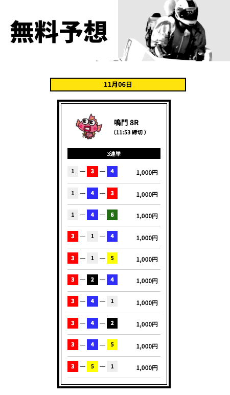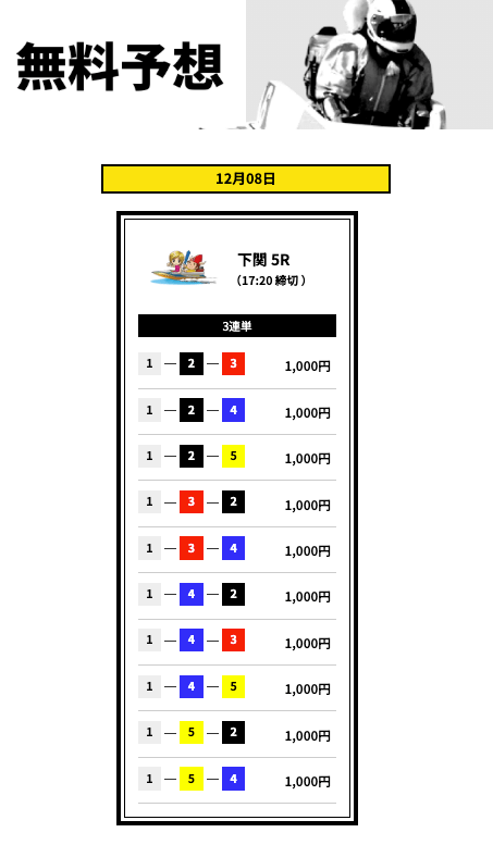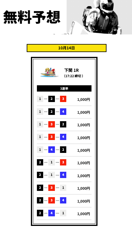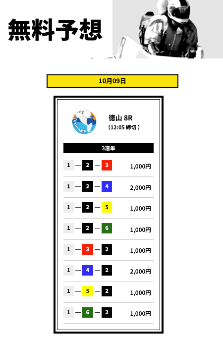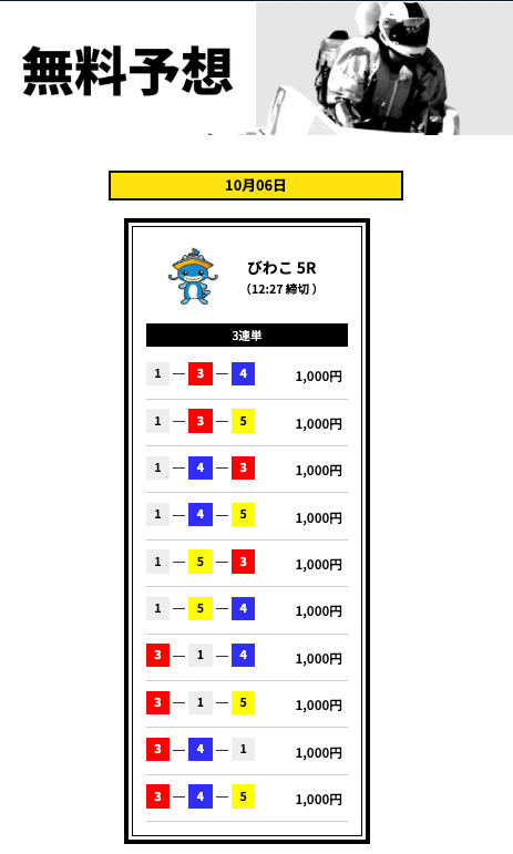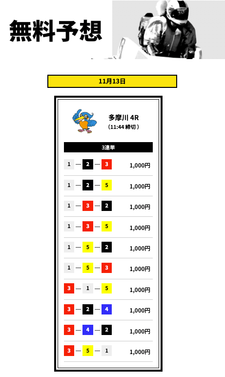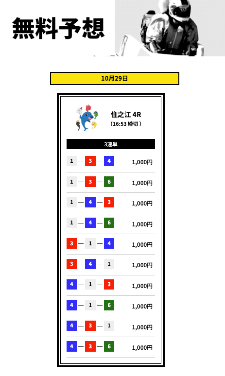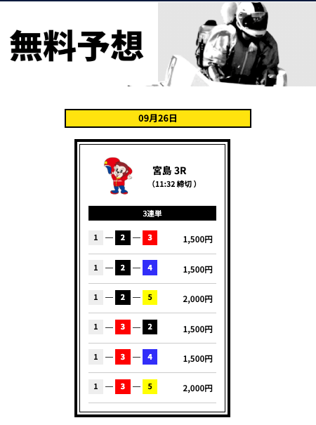 - 登録特典で有料予想に3回も参加できない