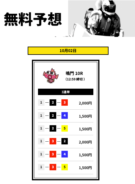 ’25/10/02 的中無料予想で16,500円獲得