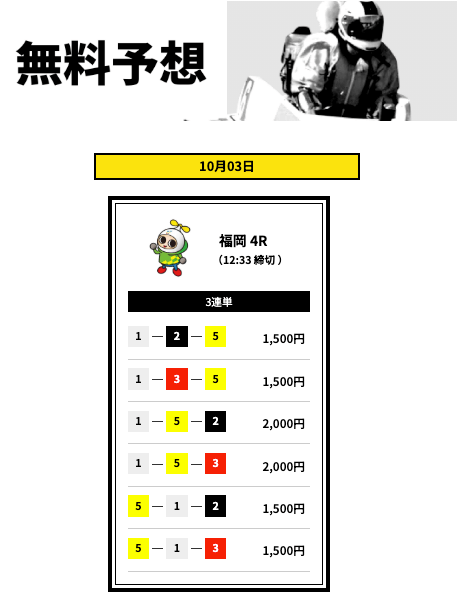 ’25/10/15 的中無料予想で10,400円獲得