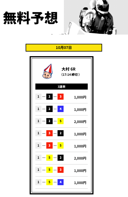 -  2025/07/15買い目数がレースに合わせて変わるのは資金管理の面でありがたい。外れた日は正直イラっとするけど、根拠のある予想だから納得して楽しめます。無料も有料も使いやすく、ちょっとした息抜きとして続けています。