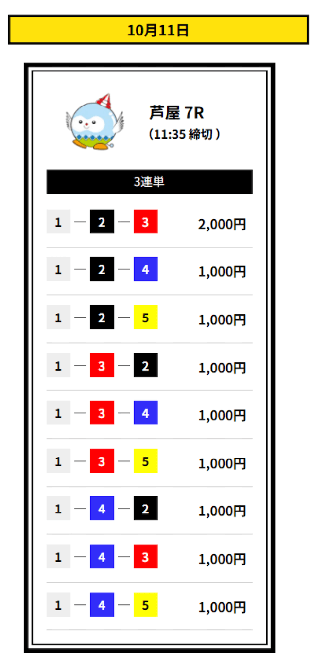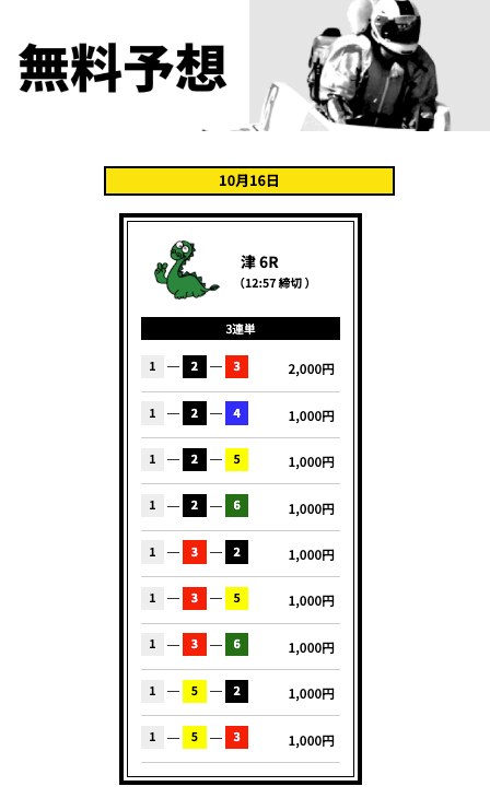 ’25/10/16 的中無料予想で11,200円獲得