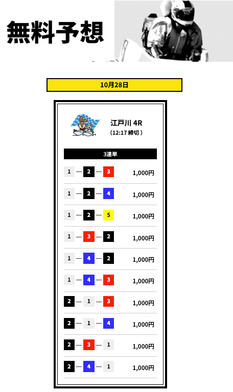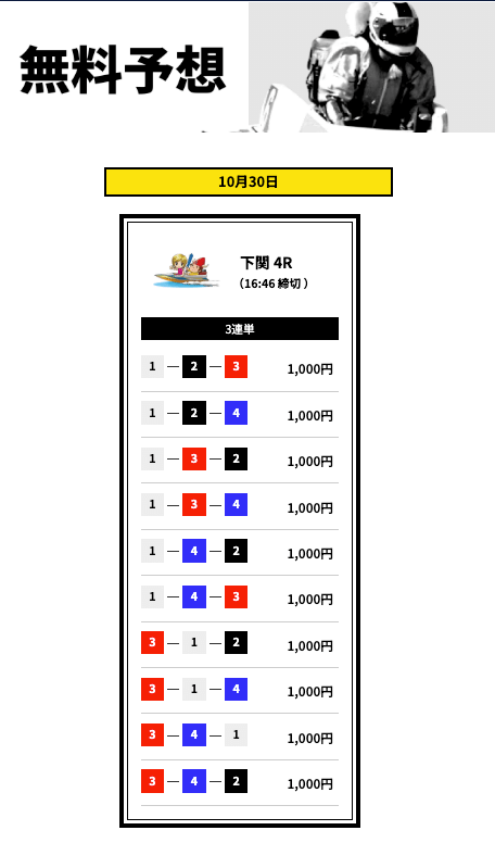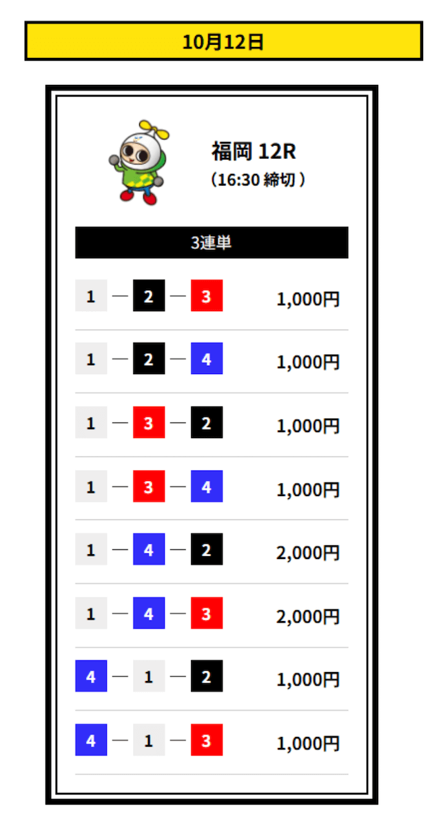 ’25/10/30 的中無料予想で12,400円獲得