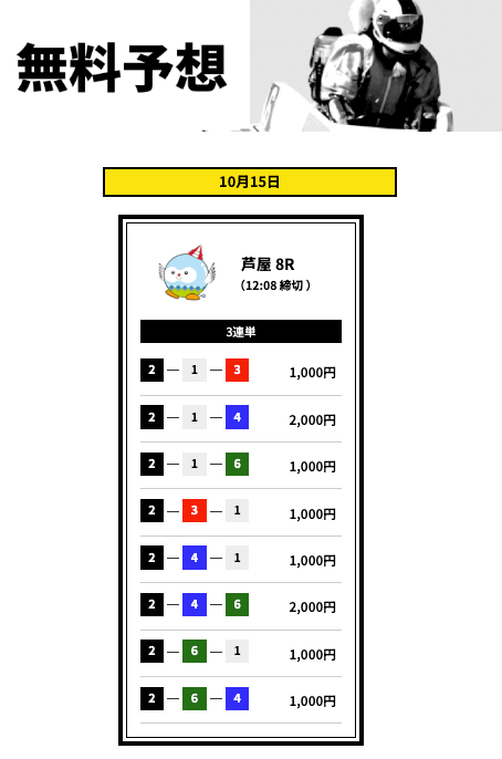 ’25/10/23 的中無料予想で15,200円獲得
