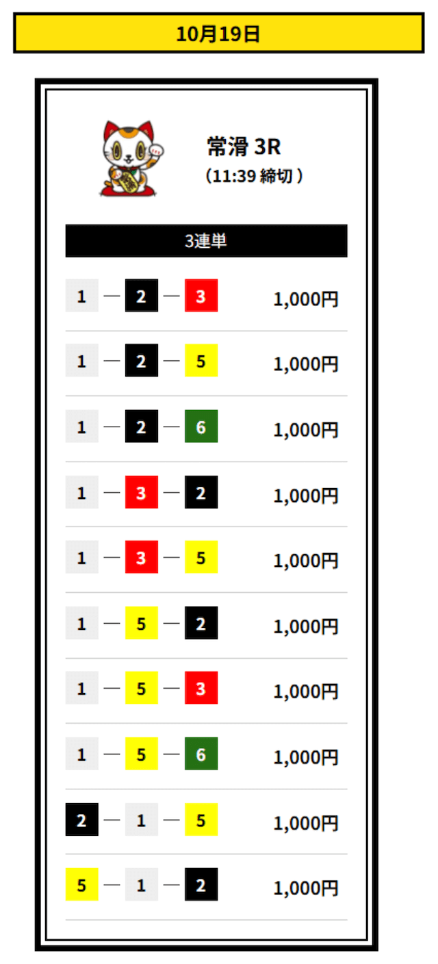 | 券種 | 3連単 |