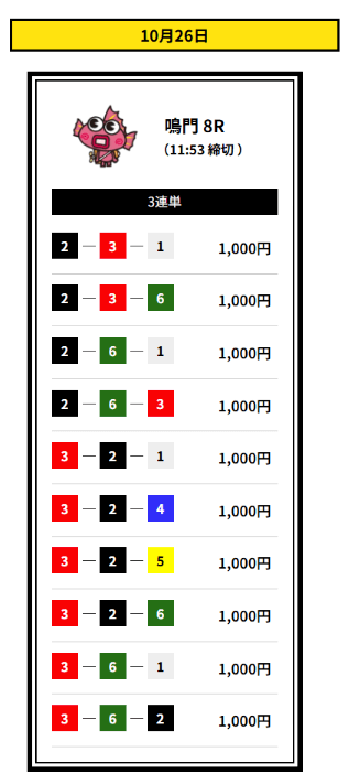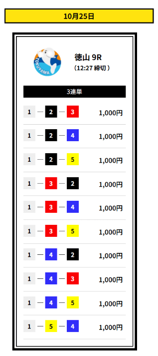 ’25/10/03 的中無料予想で24,000円獲得