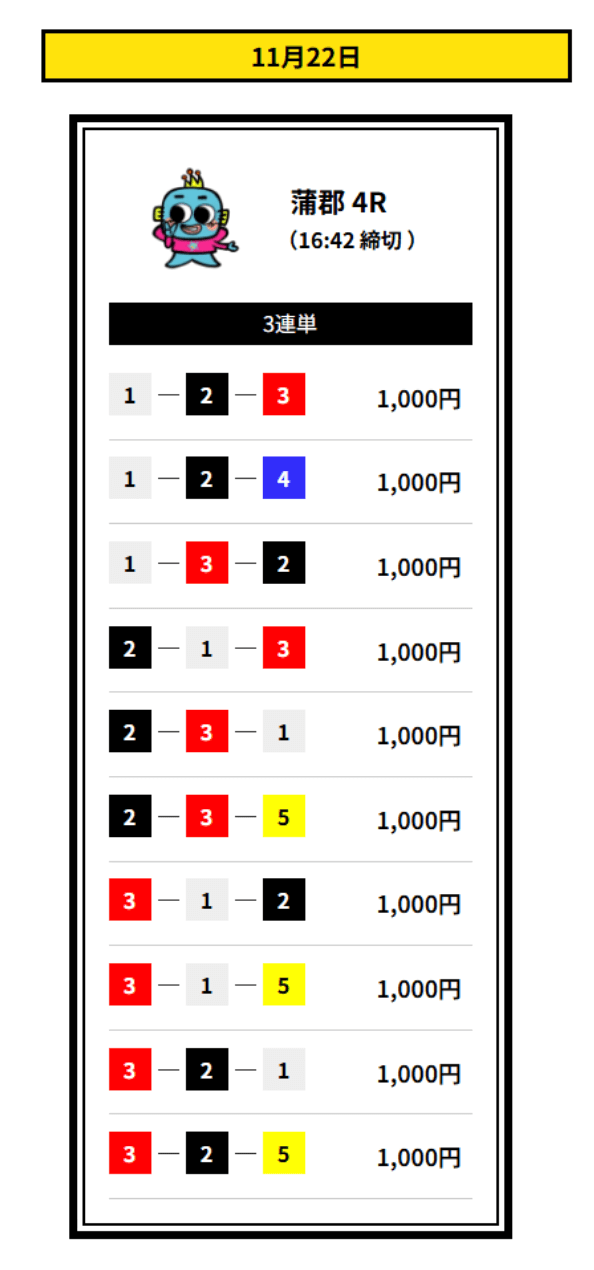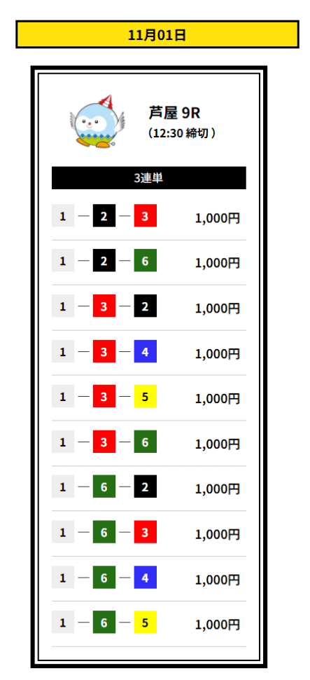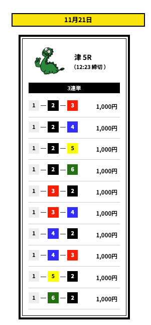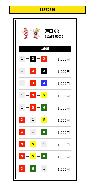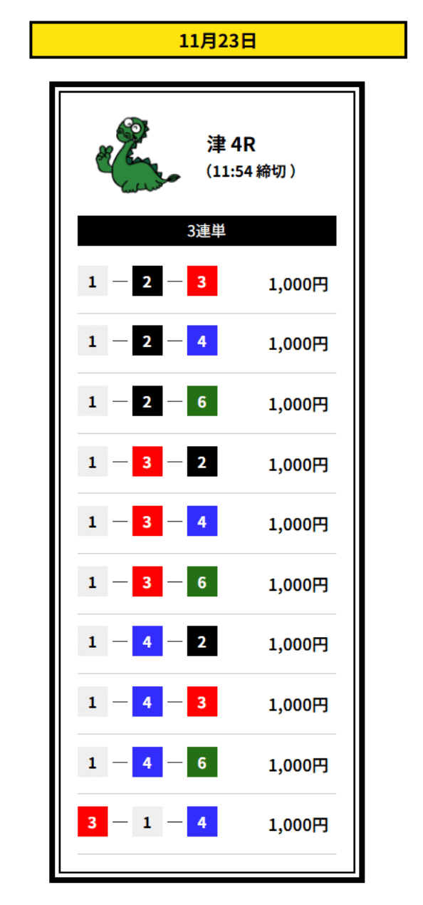 ’25/11/23 的中無料予想で13,200円獲得