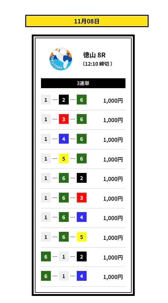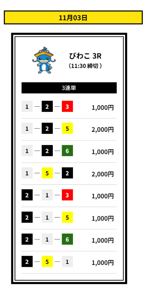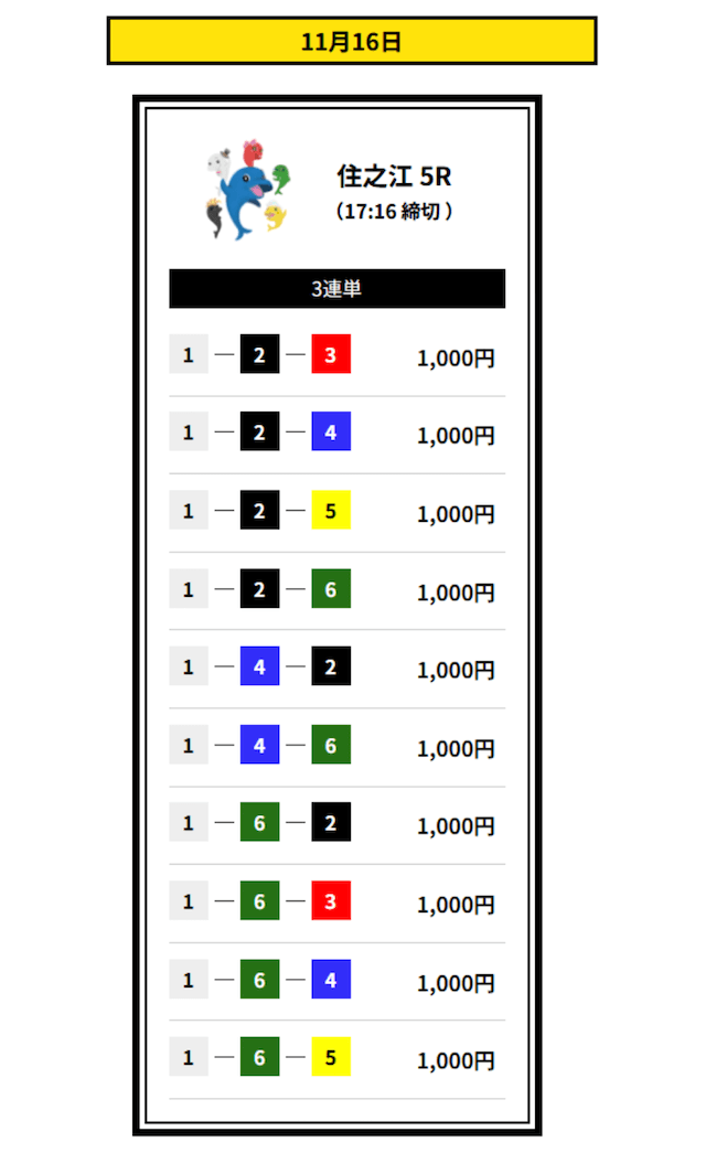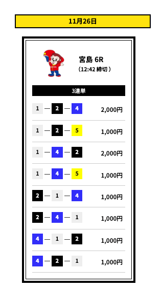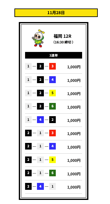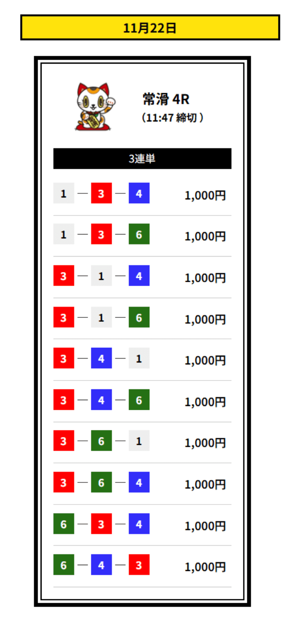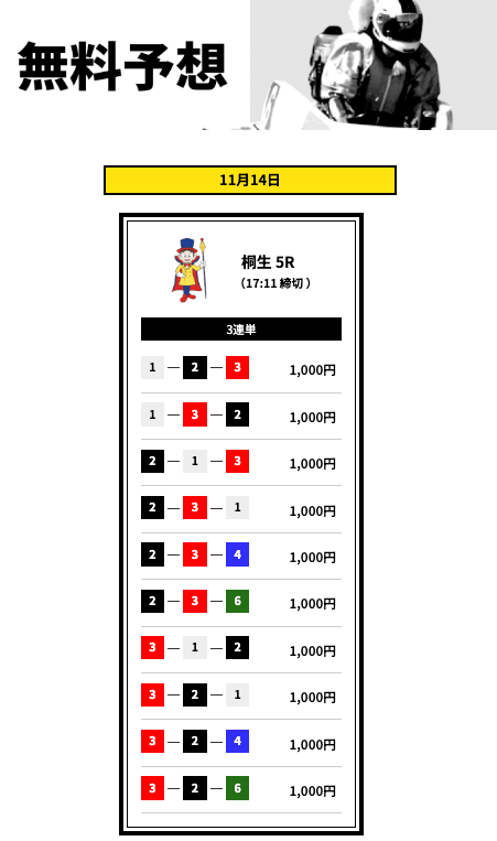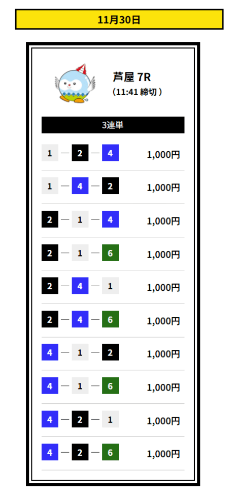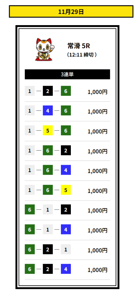 ’25/11/16 的中無料予想で14,400円獲得