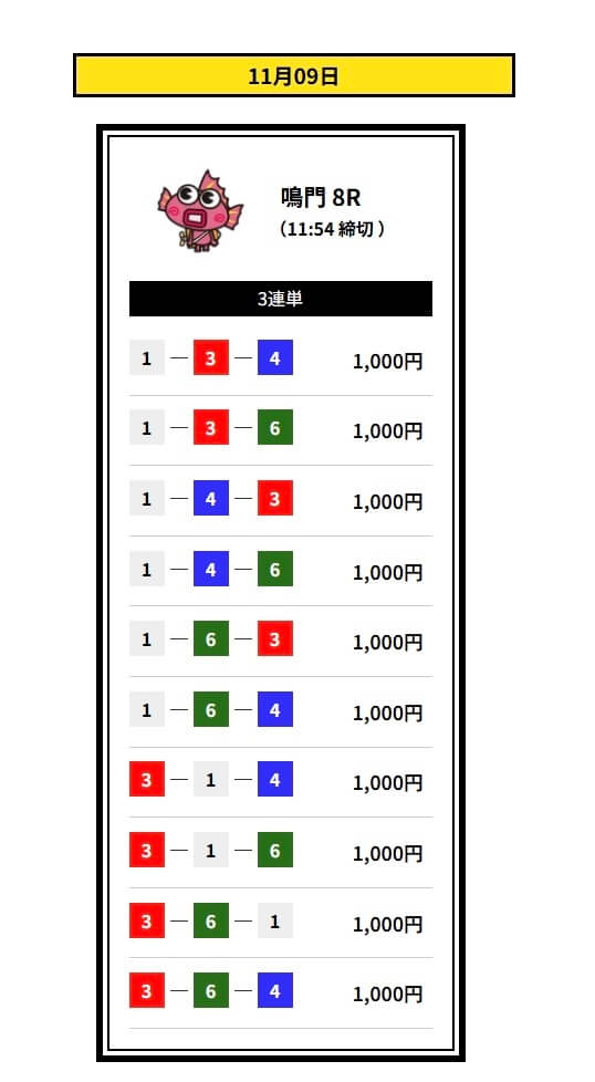 ’25/11/09 的中無料予想で15,300円獲得