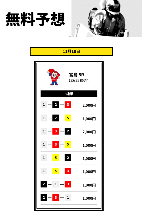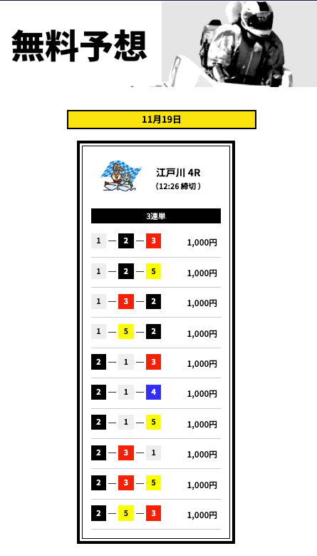 ’25/11/18 的中無料予想で12,700円獲得