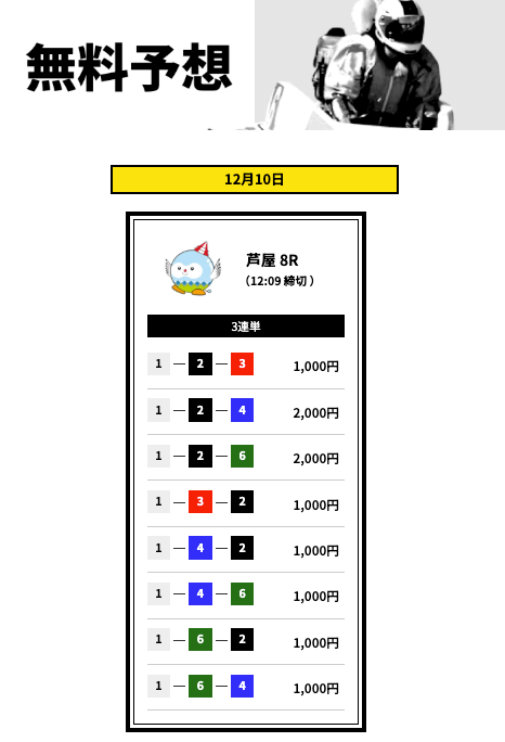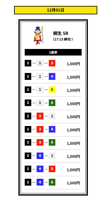 ’25/12/01 的中無料予想で31,000円獲得