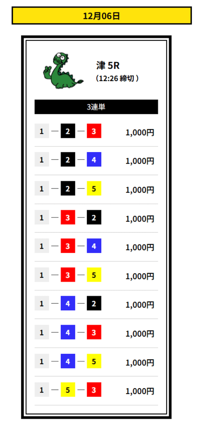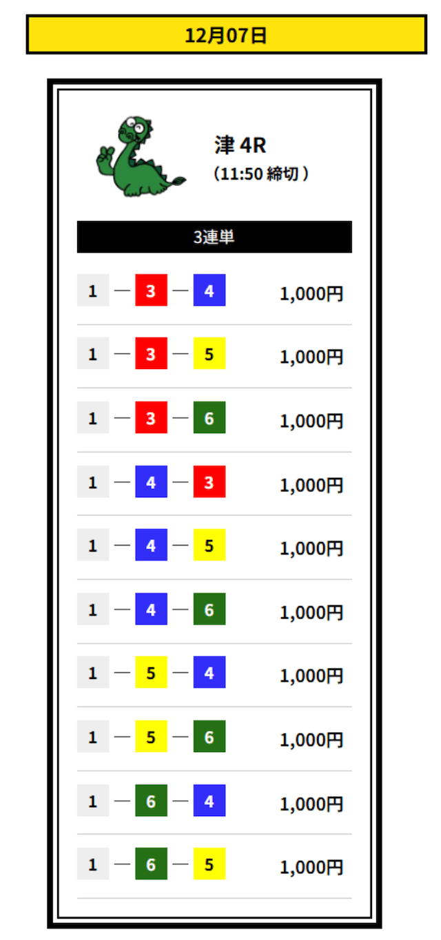’25/12/01 的中無料予想で22,600円獲得