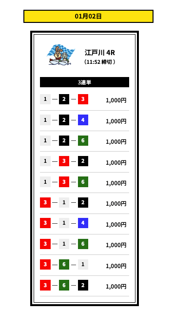 買い目も多すぎないし、スマホだけで全部終わるのが楽すぎる。 - 2026/01/16
