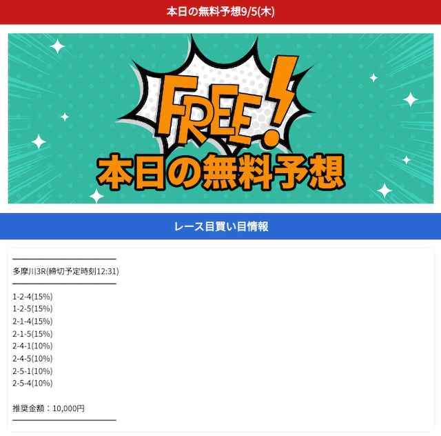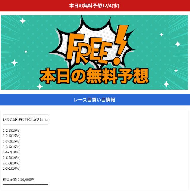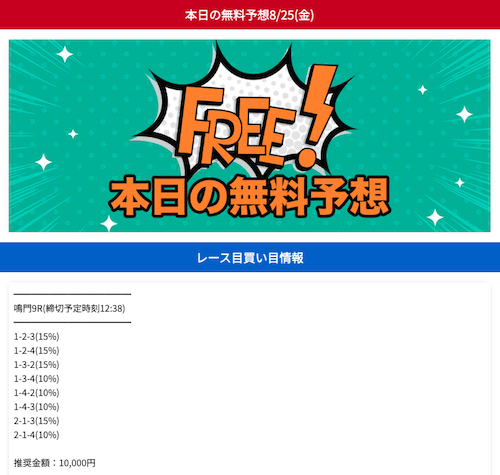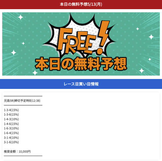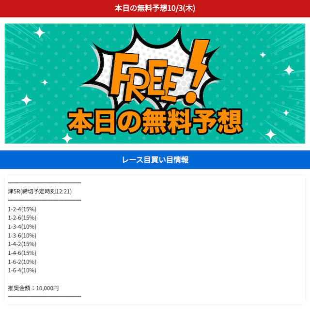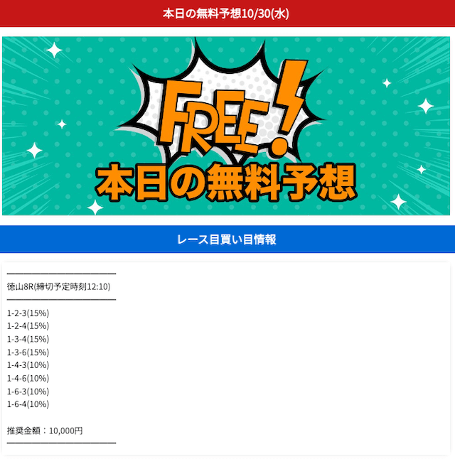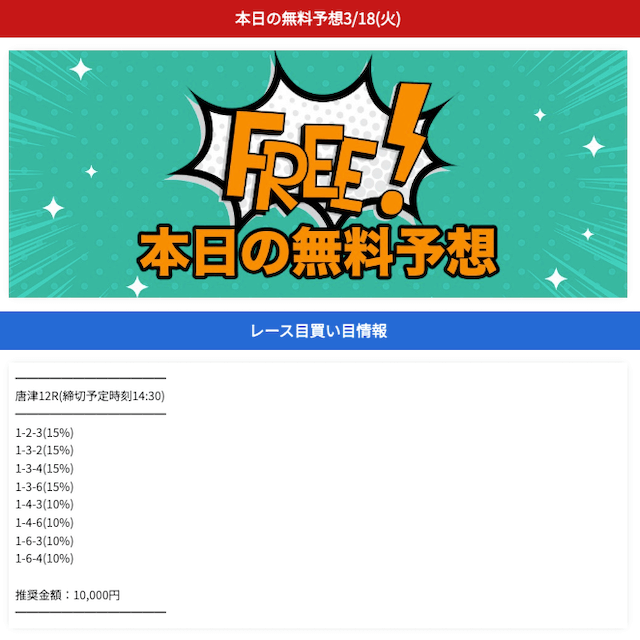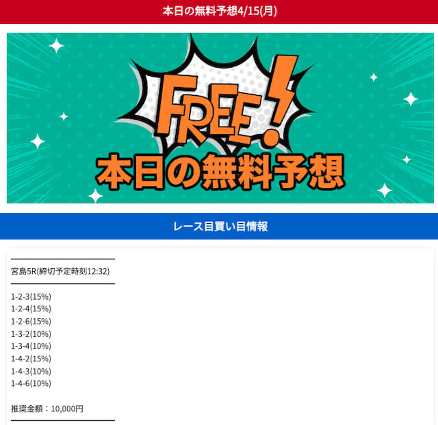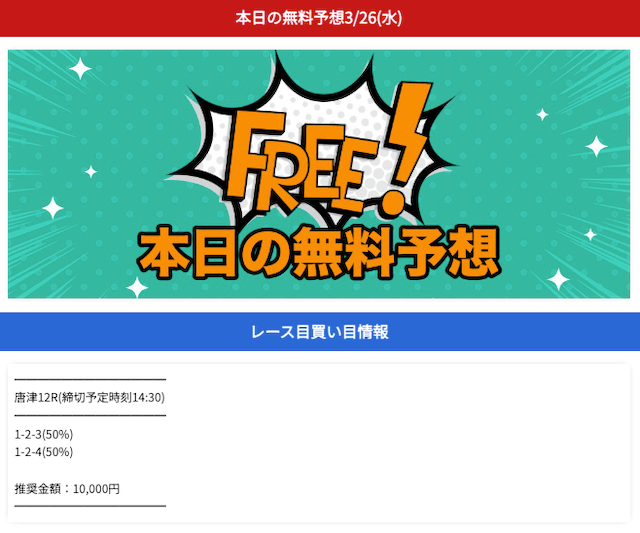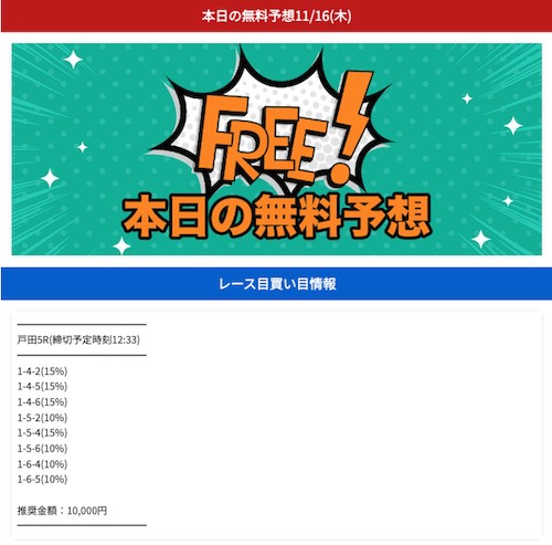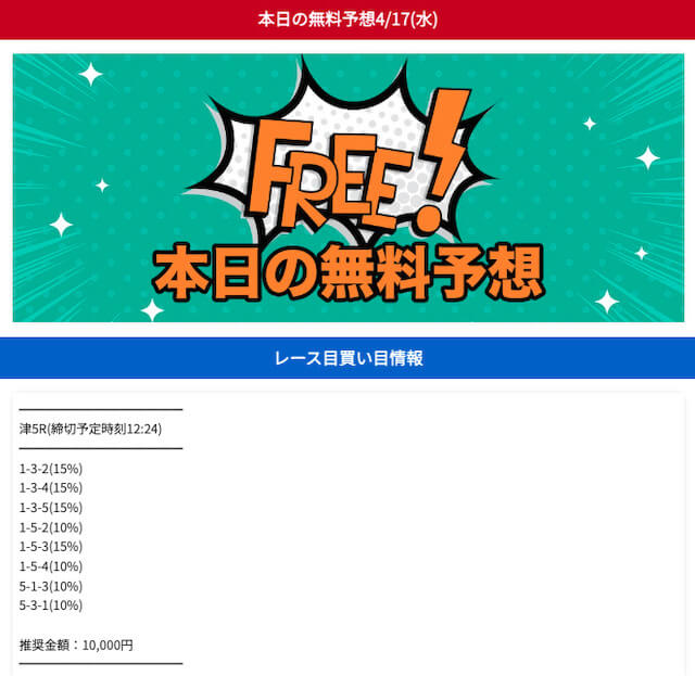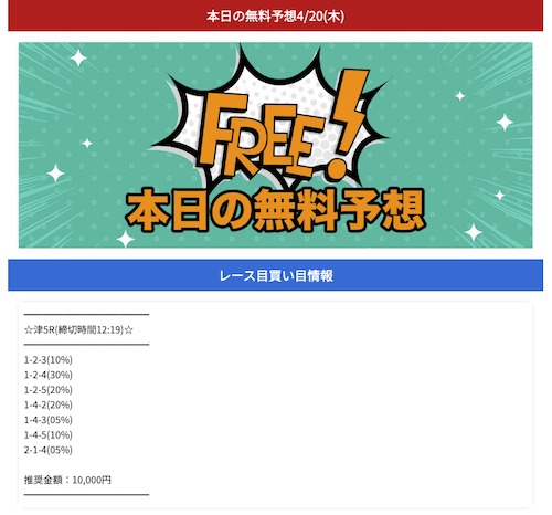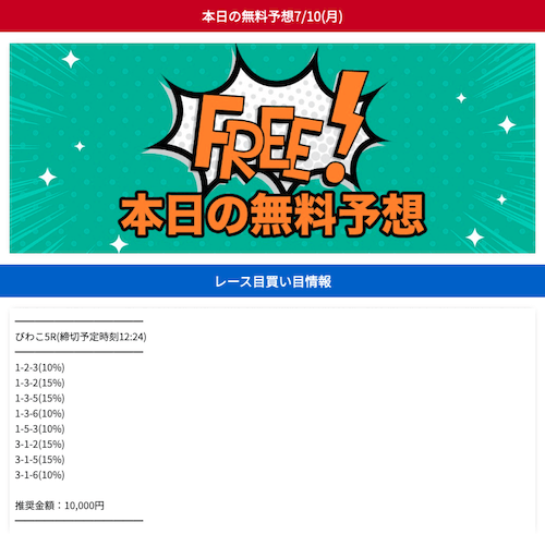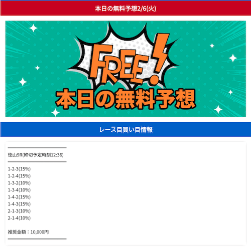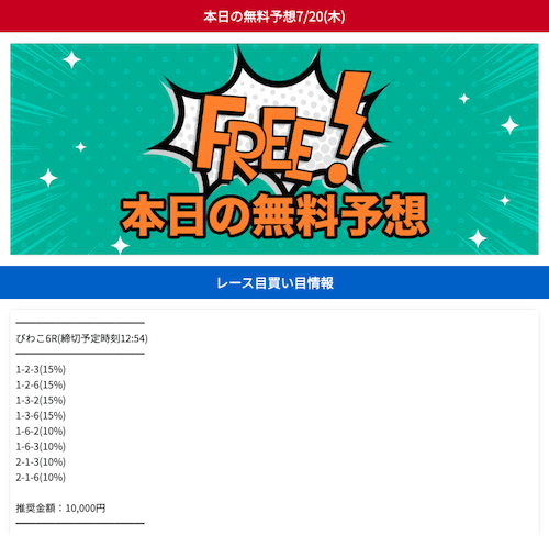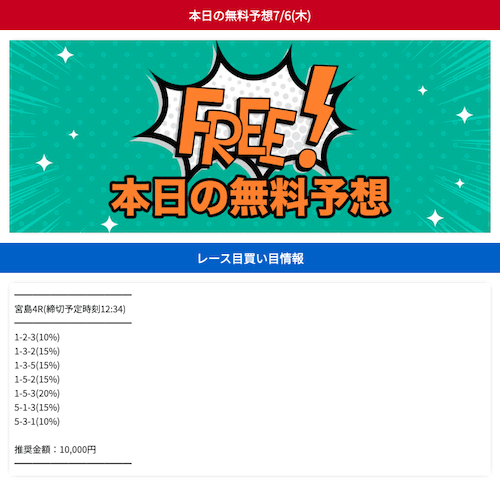 無料予想は登録すれば誰でも見れる情報なので、絶対に捏造できません。