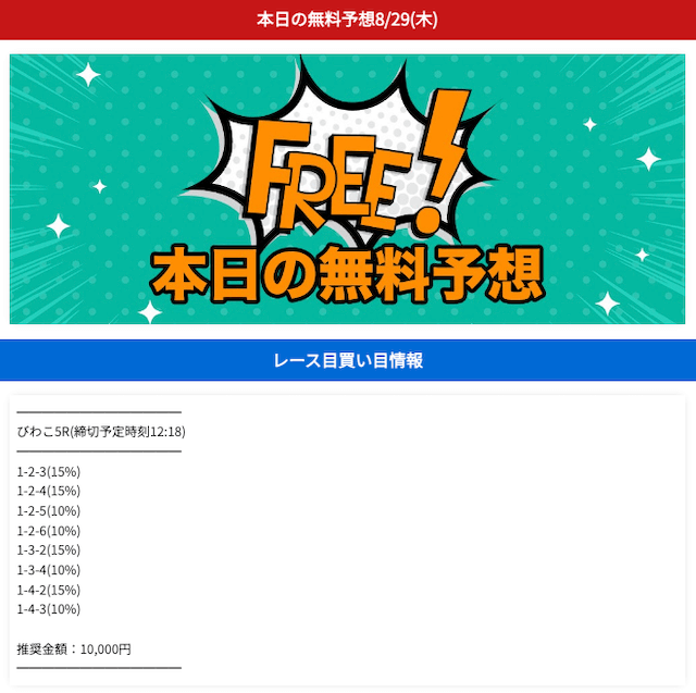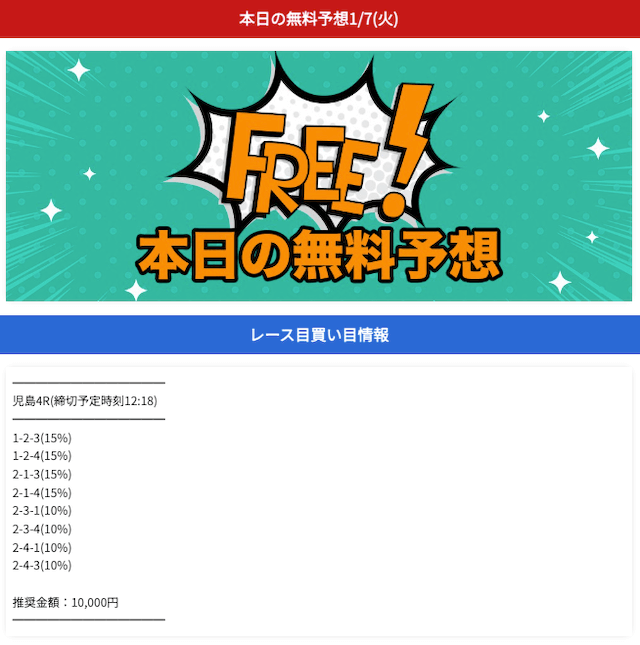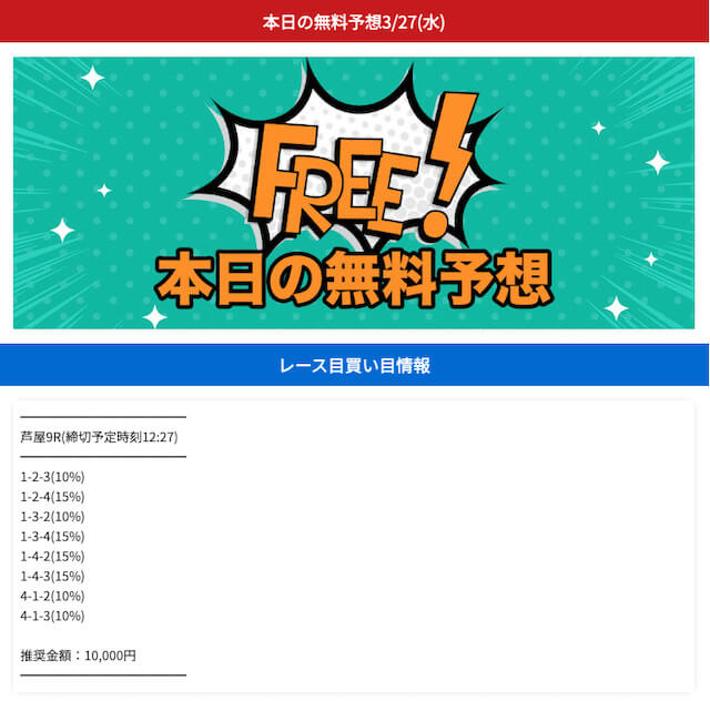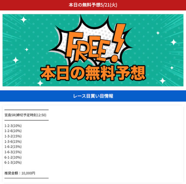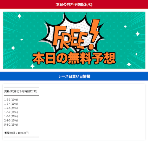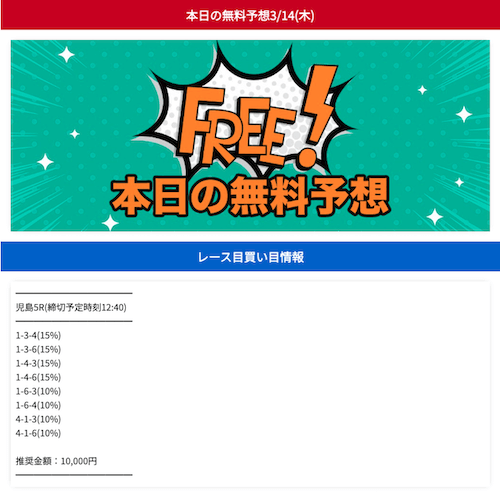特典で登録を仰ぐ悪質な競艇予想サイトではないと断言できるので安心してください。