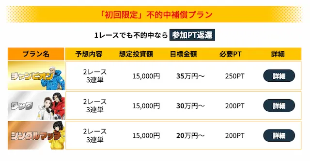 - Q3有料情報が不的中の時は保証とかあるの?A競艇タッグは初回限定で不的中保証プランを設けています。そのため、参加結果が不的中でも返還があるので、安心して利用できるでしょう。
