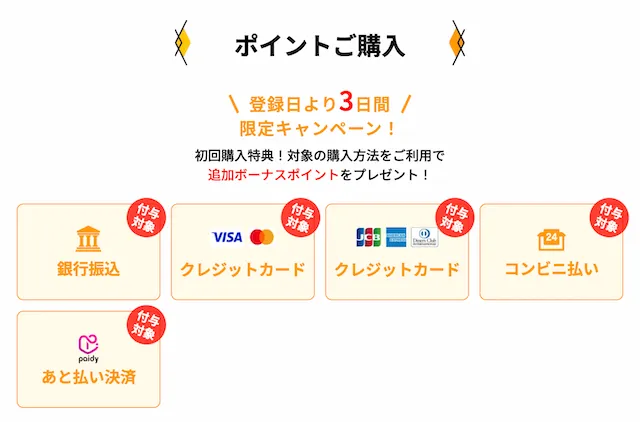 そのため、利用しやすい決済方法でポイント購入ができるので、安心して利用できるでしょう。