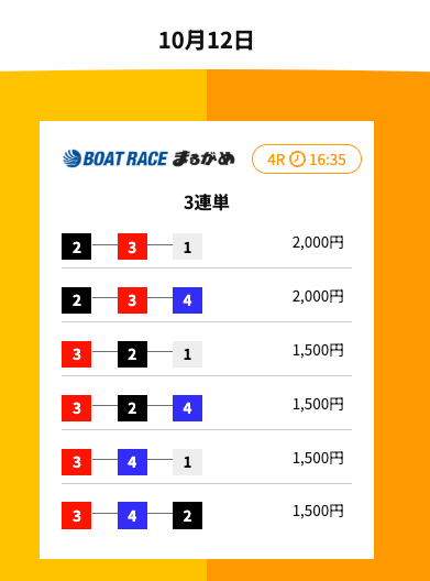 初検証日の2025年10月12日に公開された丸亀4Rの予想は以下の通りです。