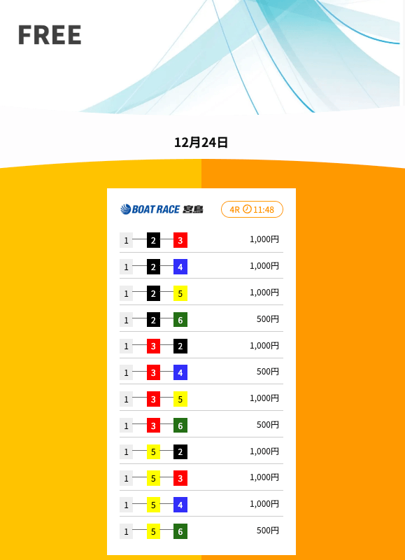 ’25/12/23 的中無料予想で42,200円獲得