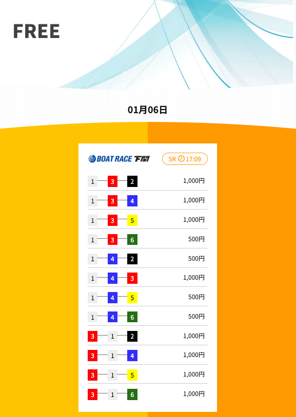 ’26/01/06 的中無料予想で20,700円獲得