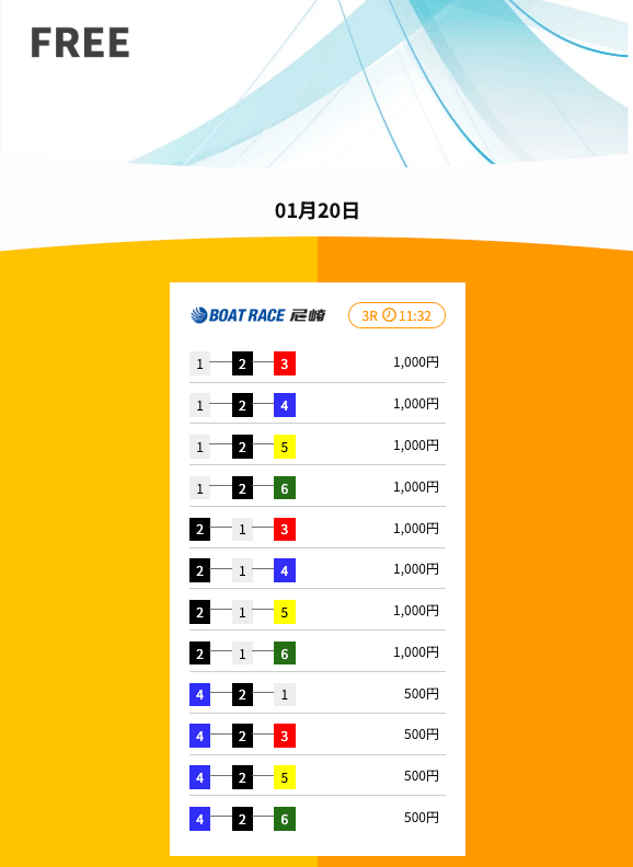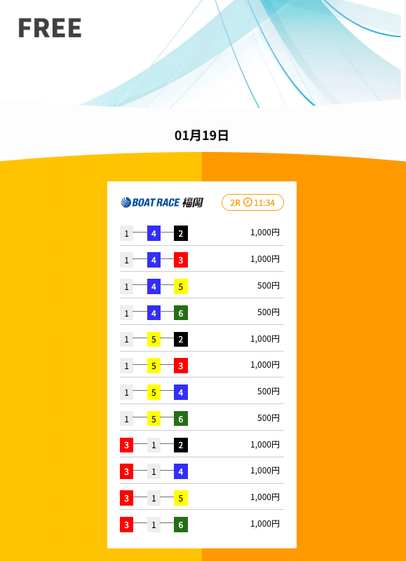 ’26/01/20 的中無料予想で36,500円獲得