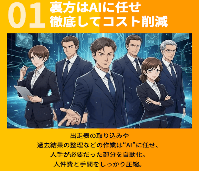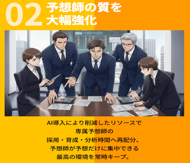 ⇒AIに情報処理を任せることでコストや手間をカット - 質の高い予想師の確保