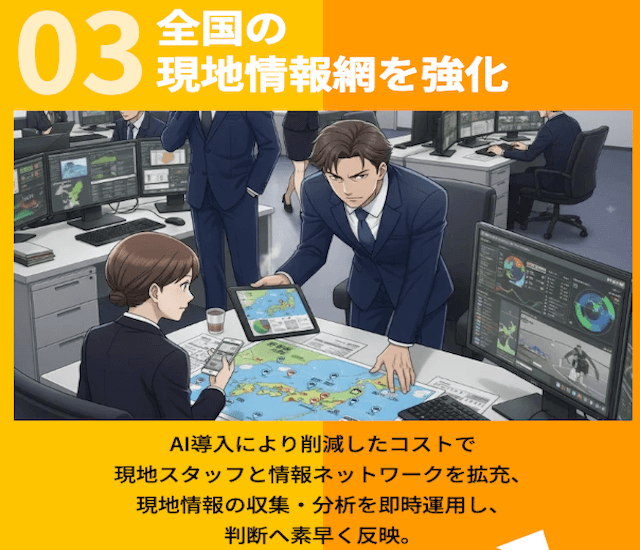 ⇒現地スタッフを拡充し、スピーディーな情報収集・分析を実現