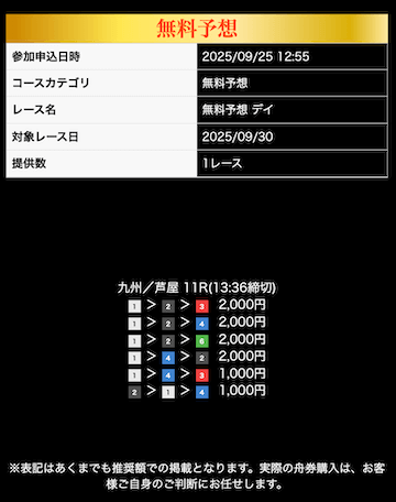 登録直後は感じが良かったけど、途中から「このレースは特別情報です」とか言って5万円以上する情報を勧めてくる。安いプランは全然当たらないし、結局高いコースに誘導される仕組み。