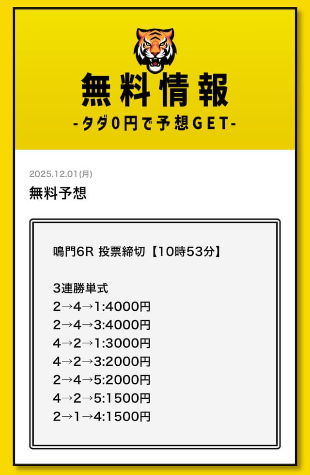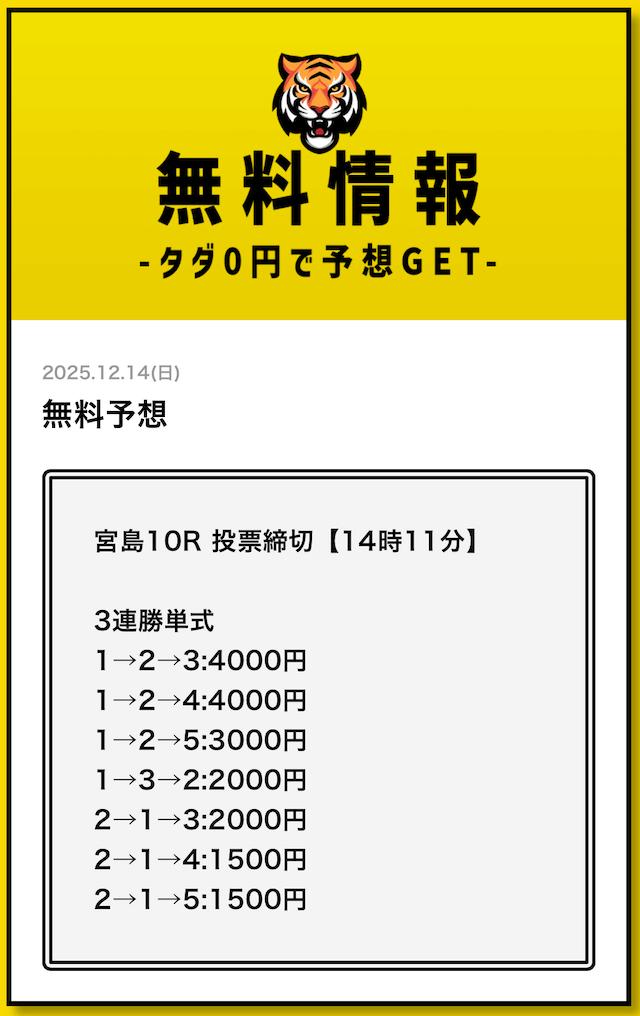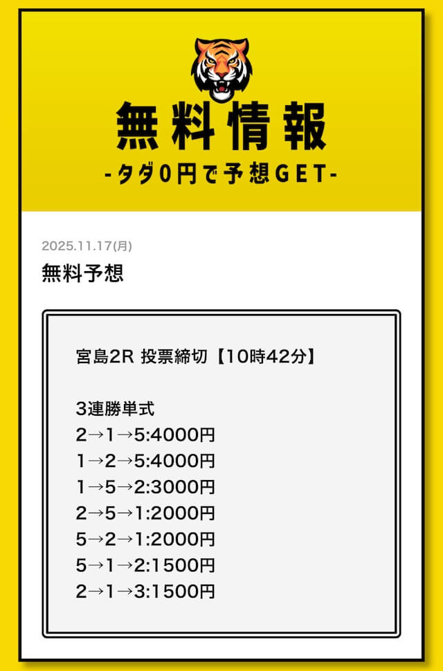 タイガーボートは、攻略難易度の高いレースを読み切ることに長けた予想サイト。
