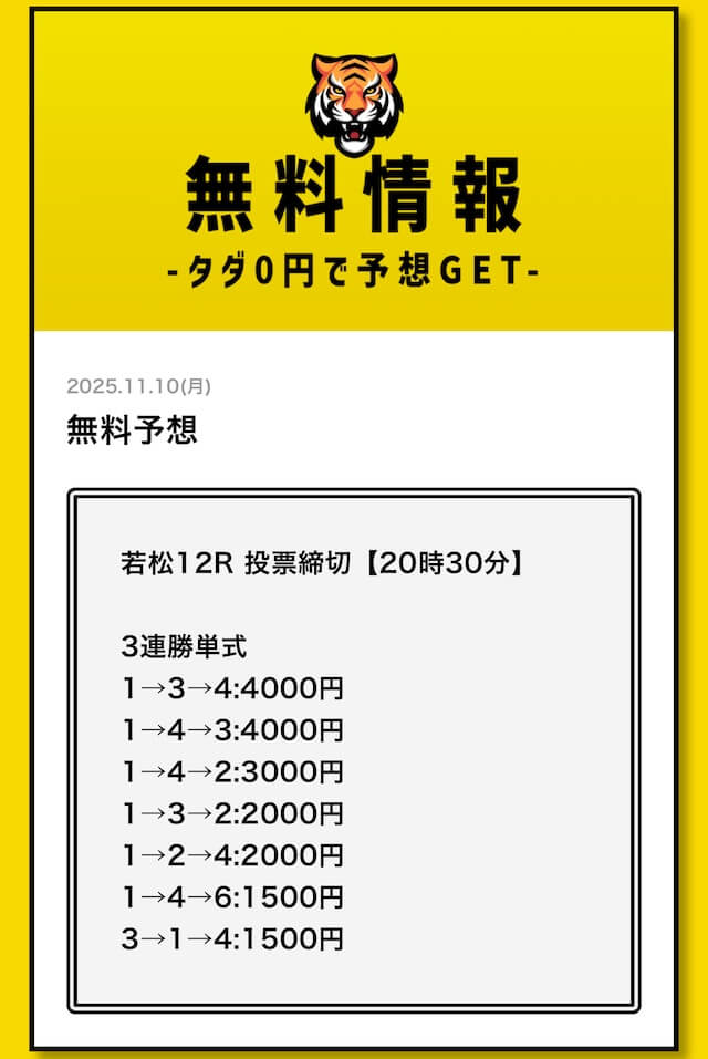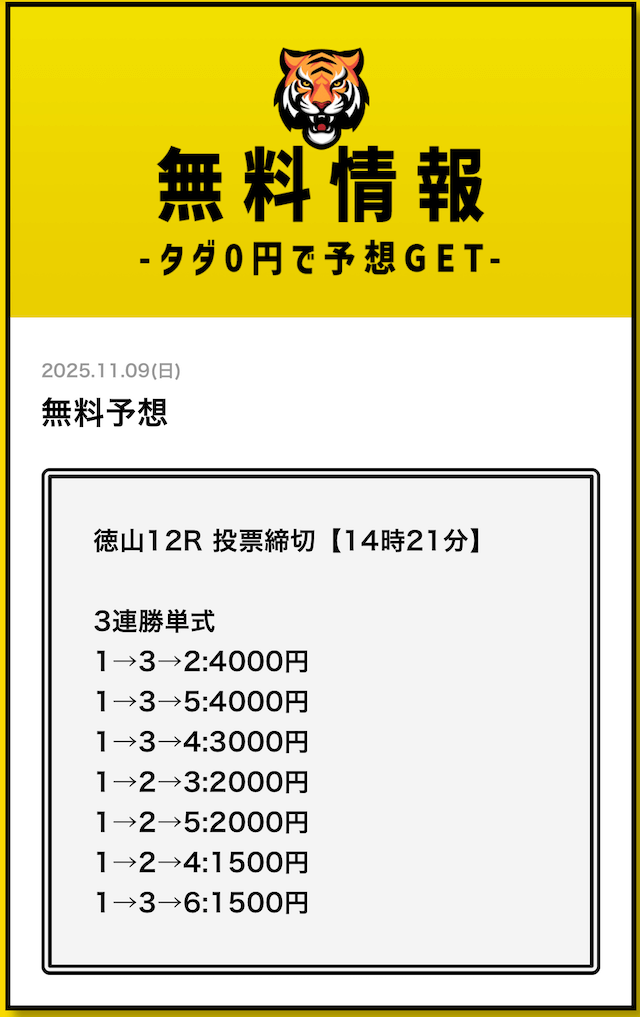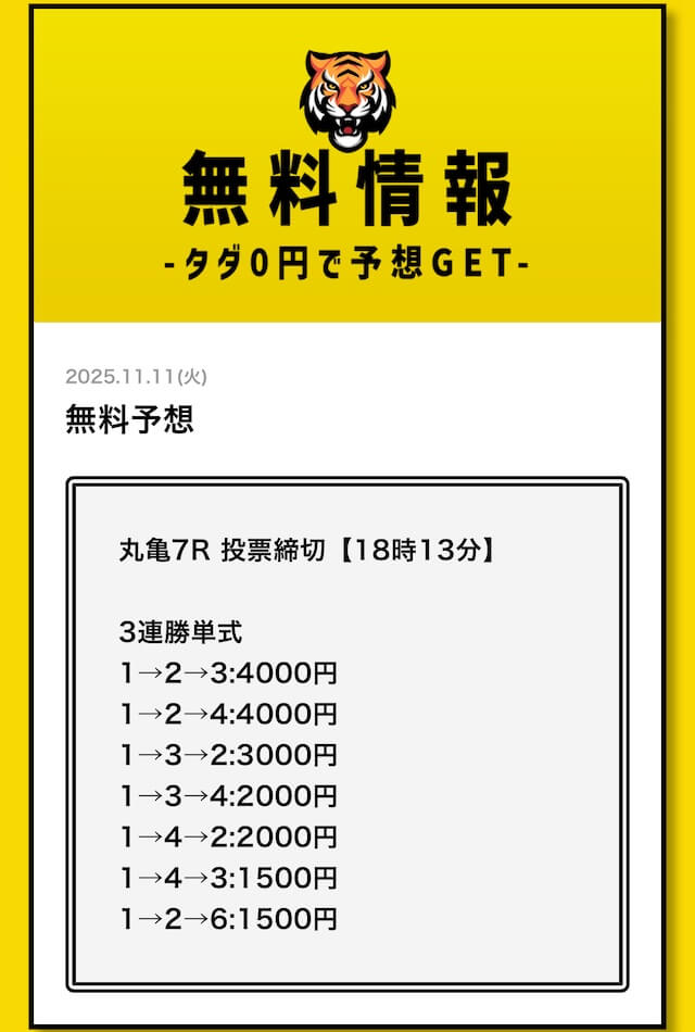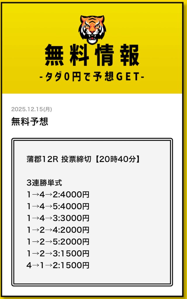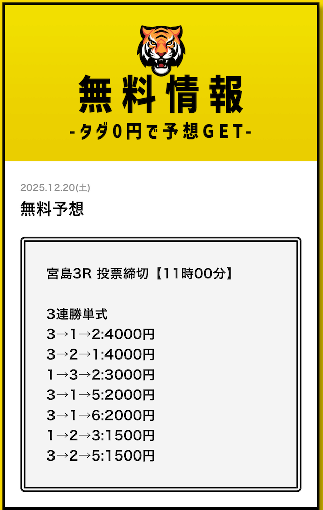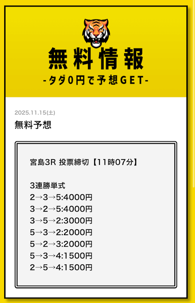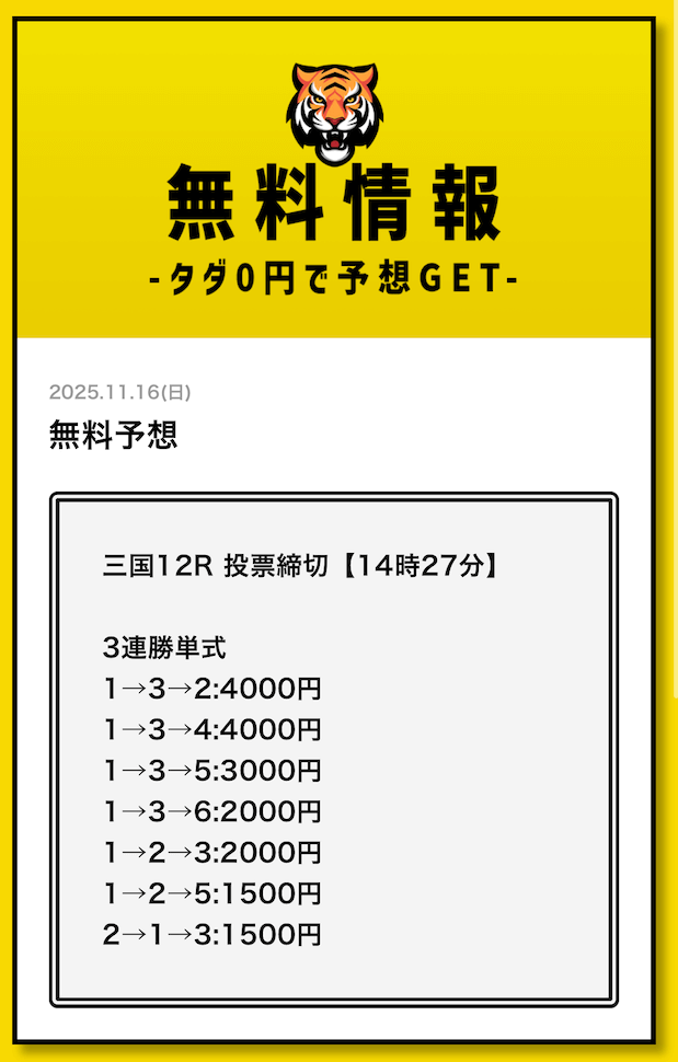 では、タイガーボートが実際に提供した買い目を見ていきましょう。