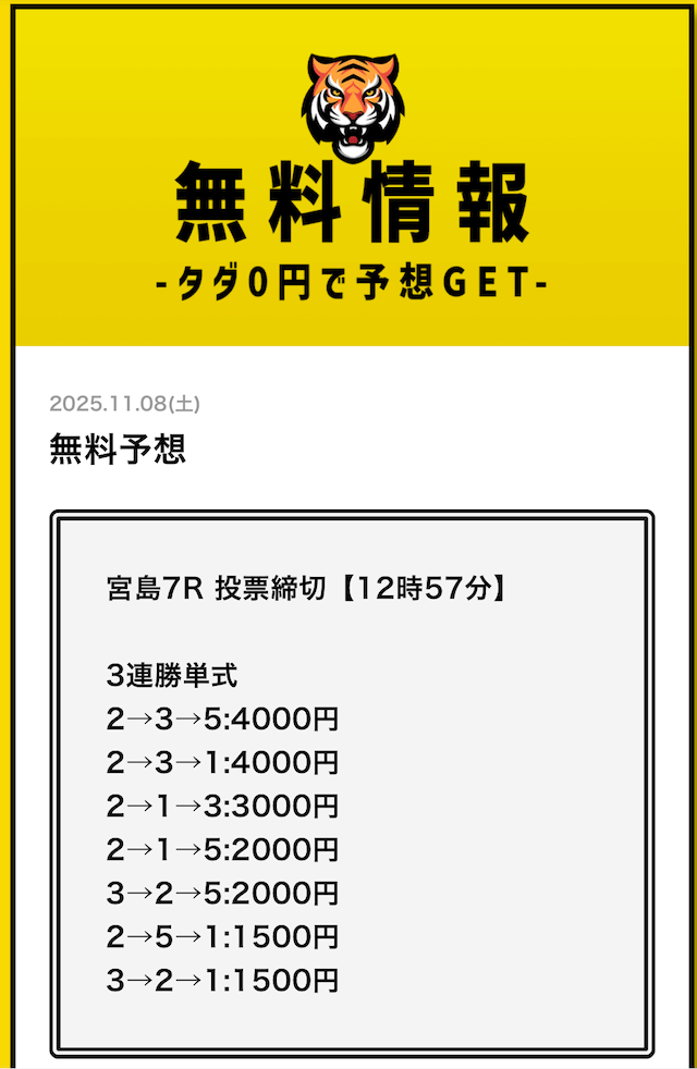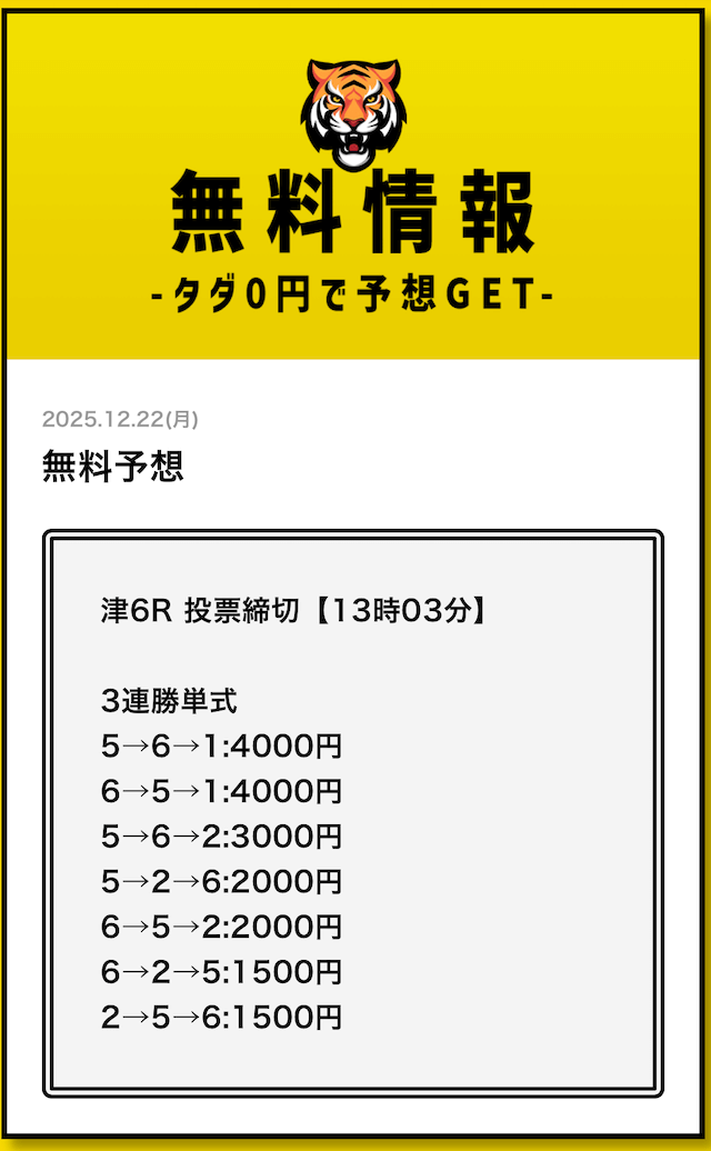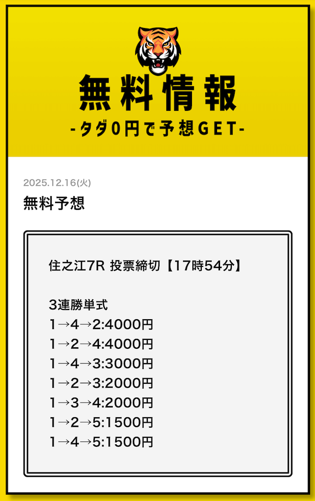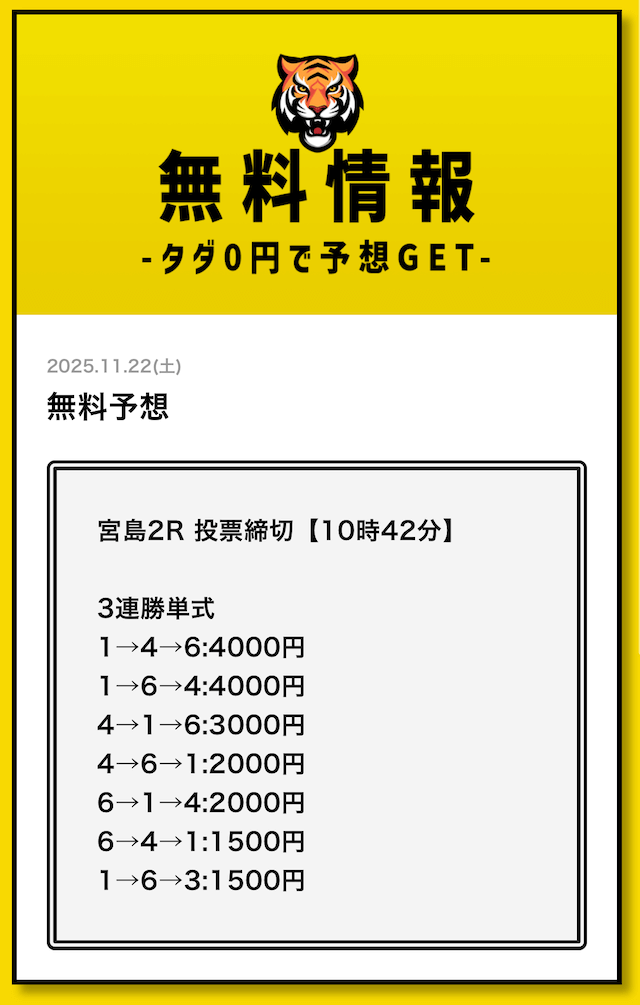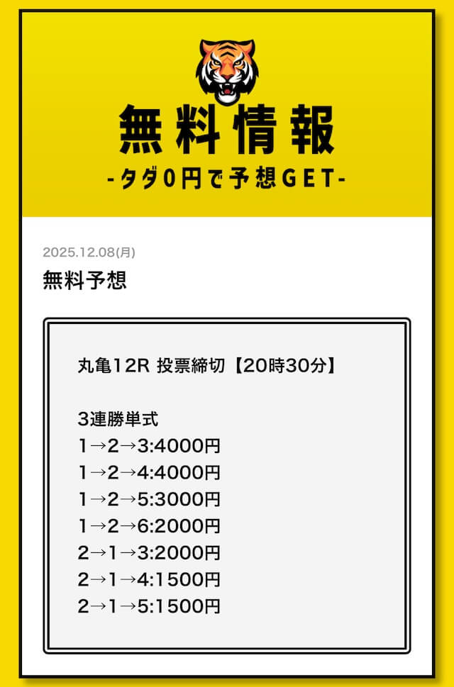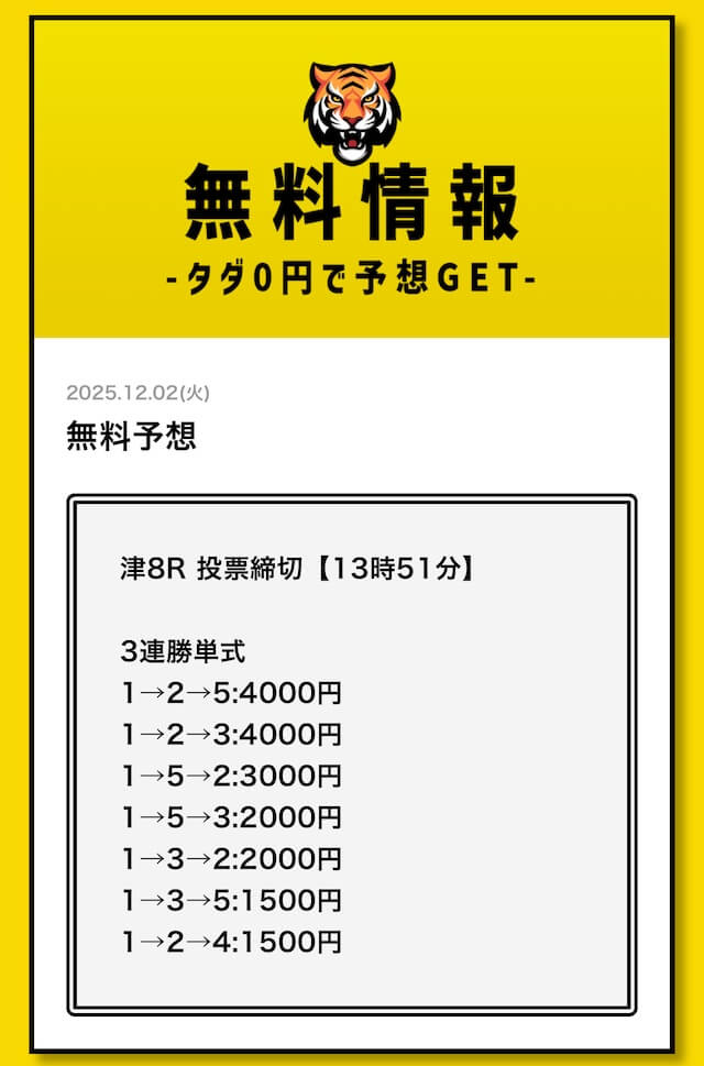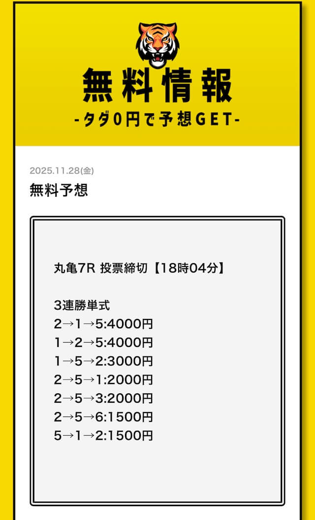 では、タイガーボートが実際に提供した買い目を見ていきましょう。