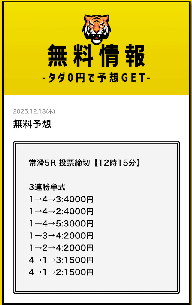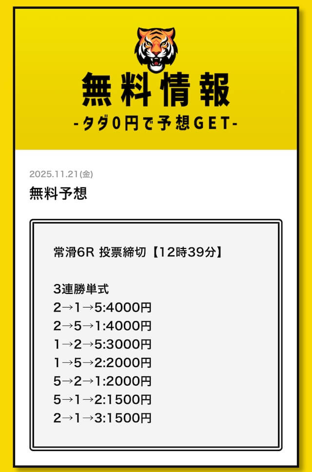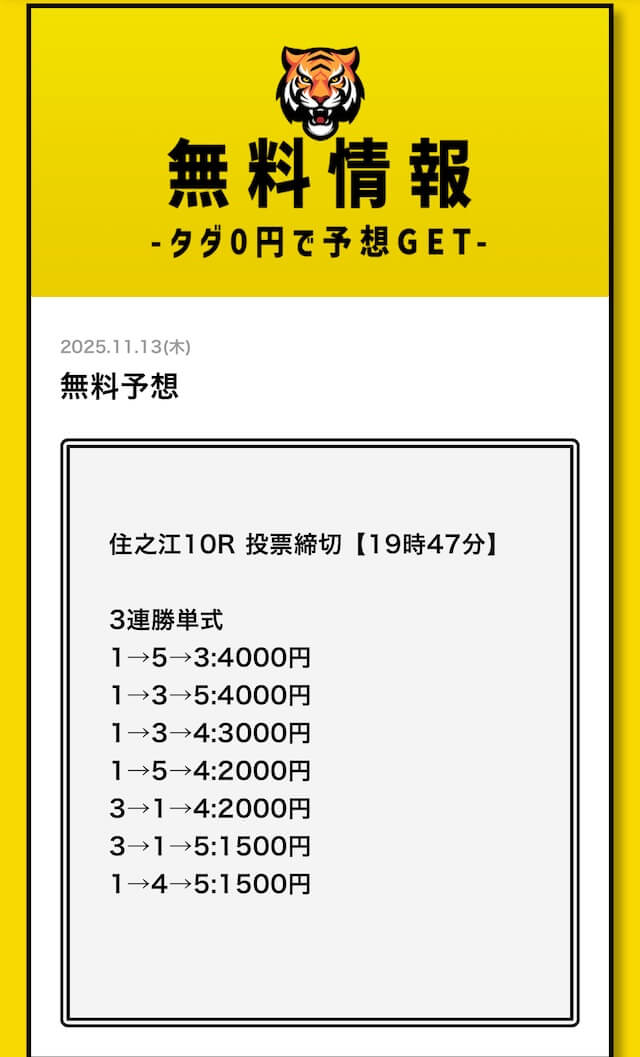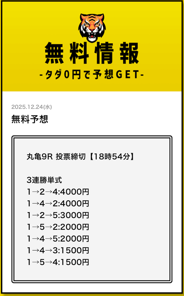 そのため、タイガーボートのサイト内には記載がないですが「皆様にお喜びいただける」予想には偽りないでしょう。