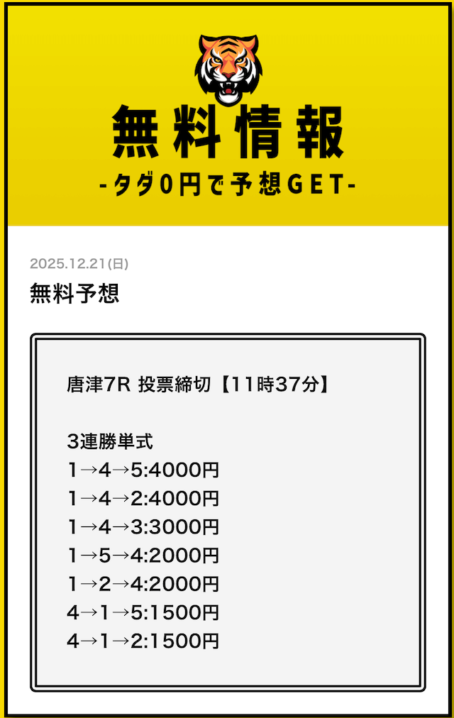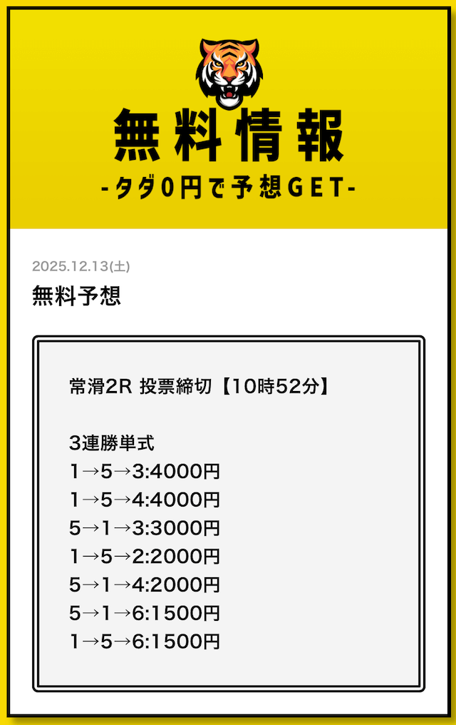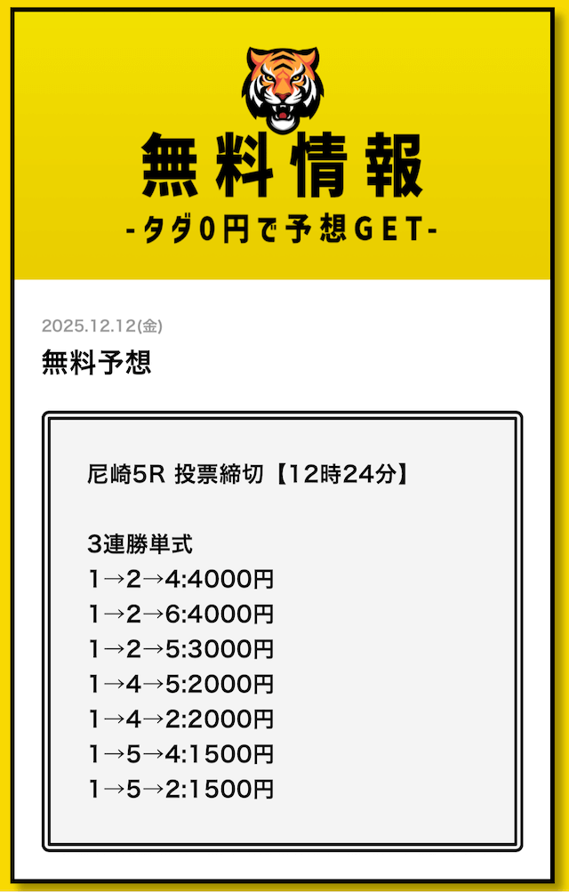 買い目が整ってないから、ちょっと見にくいんだよな…。無料で提供してくれてるからありがたいけど、どうしても不親切に感じちゃう。