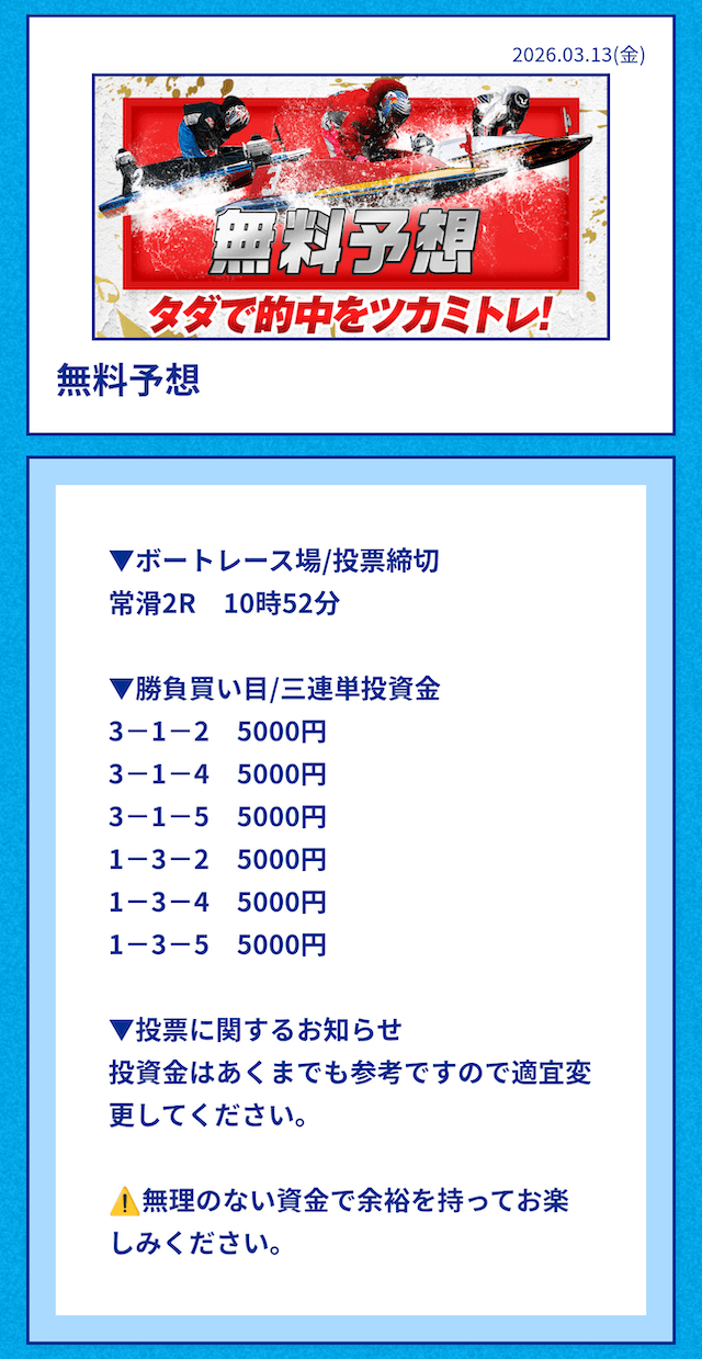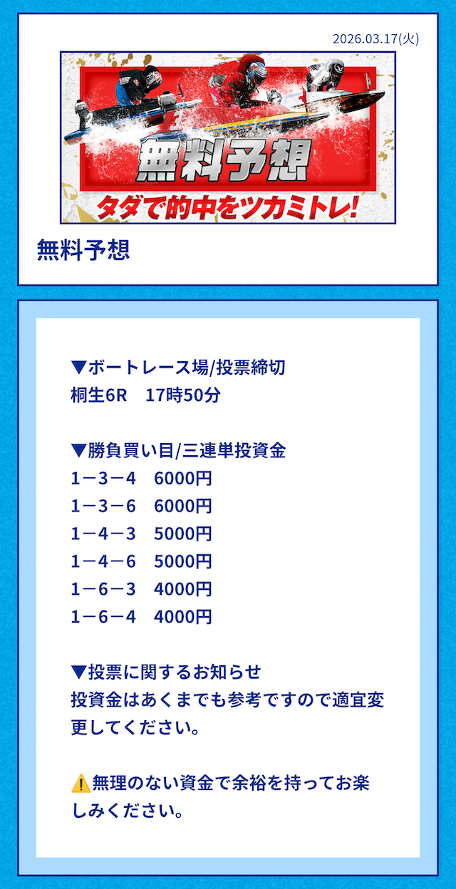 ’26/03/17 的中無料予想で50,400円獲得
