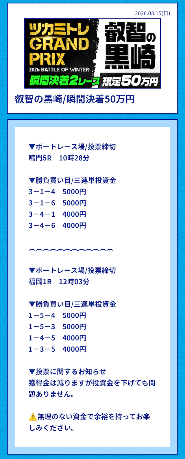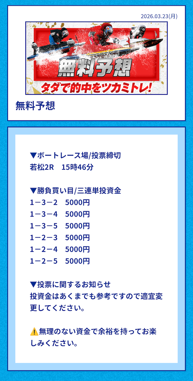 ’26/03/15 的中無料予想で45,000円獲得