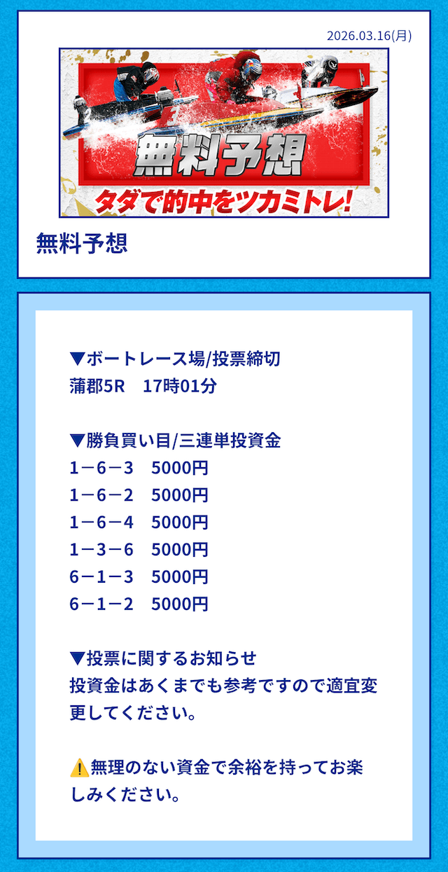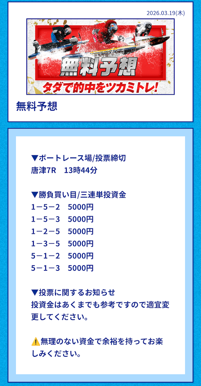’26/03/16 的中無料予想で82,000円獲得