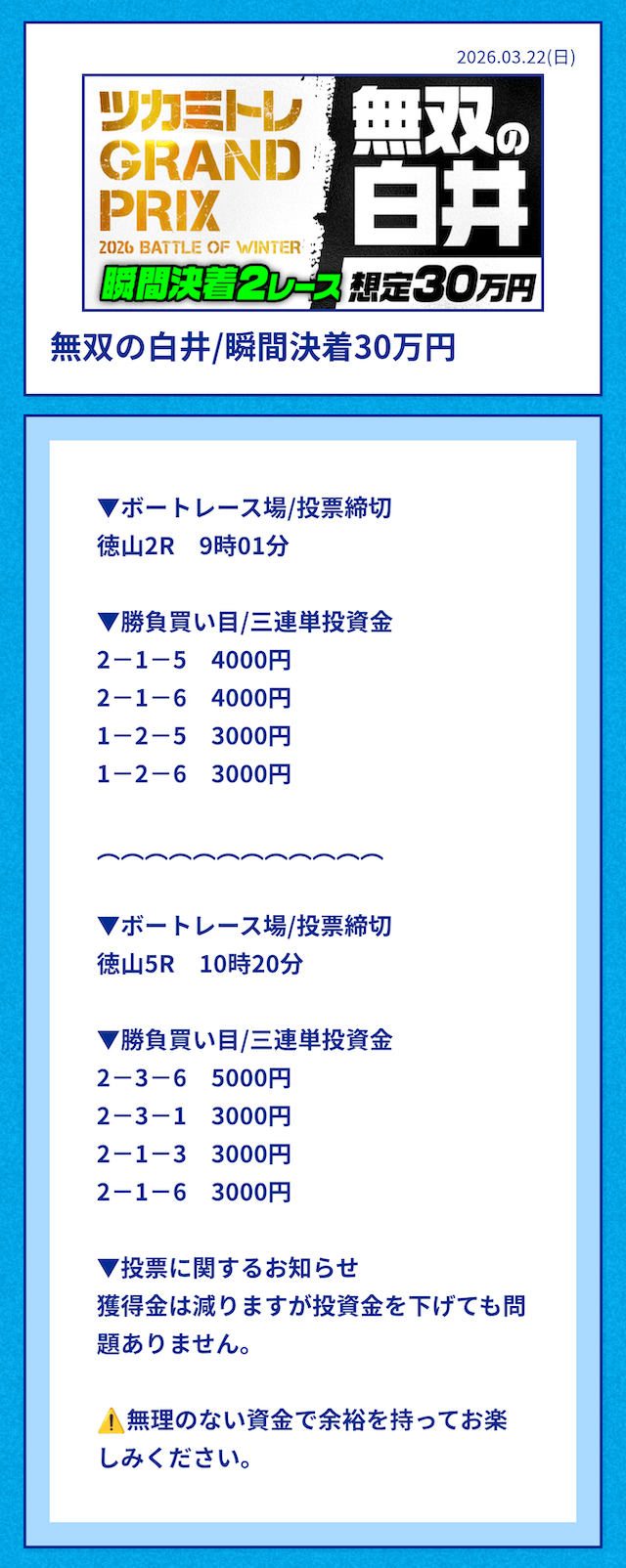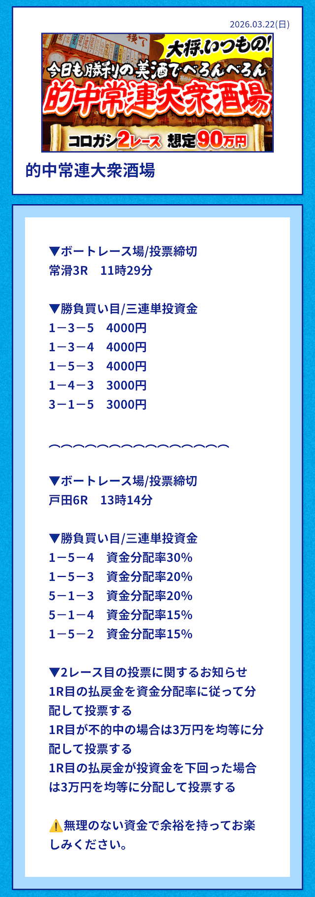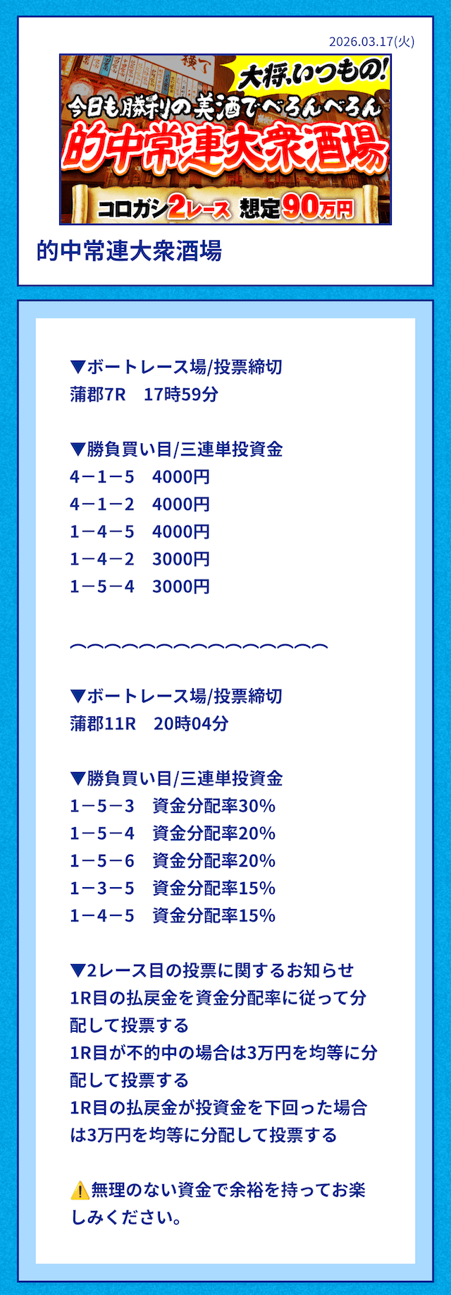 ★★★★★ 5.0 NEW2026/03/19資金配分いいねぇ、ギャンブラー魂が込み上げてきちまったよ