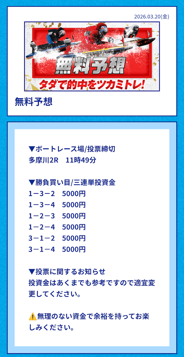 ’26/03/20 的中無料予想で76,000円獲得
