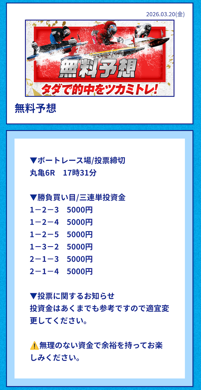 何個か競艇予想サイトを使ってきたけど、この予想サイトはなかなかやるやつですね。 - 2026/03/23