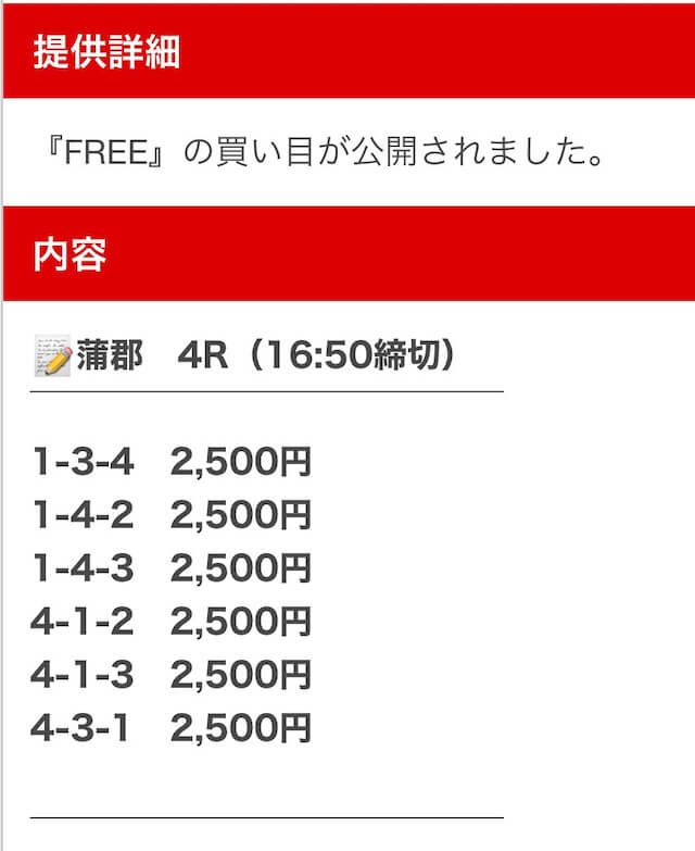 ’25/09/29 的中無料予想で46,950円獲得