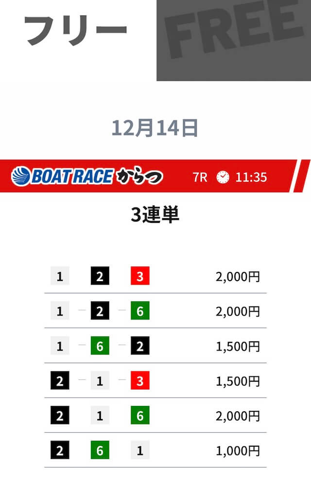 無料プラン2日分(4回)と、有料プランを2回(4レース)購入、