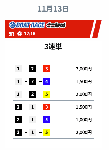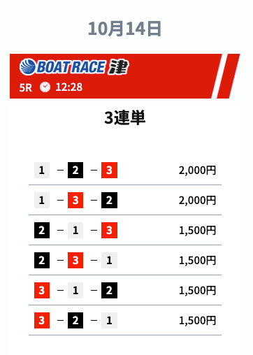 ★★★★★ 5.02025/03/13無料予想に参加して当たった利益で有料予想に参加〜みたいなのしたかったけど、予想が堅実的で軍資金稼ぐまで待てないから昨日参加したわ笑