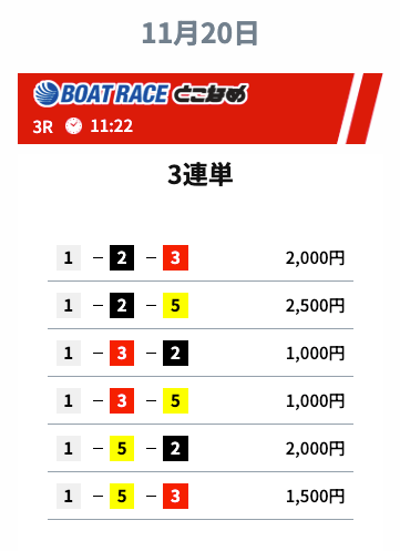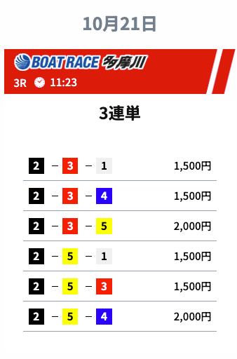 せっかくだからスマッシュ?という5万のプラン参加したけど、1レース目に1番人気でオッズ6,9倍。おい普通にプラン料金回収できねえだろと思ってたら、2レース目で万舟ぶち当てて流石に発狂。あざました。 - 2025/02/21
